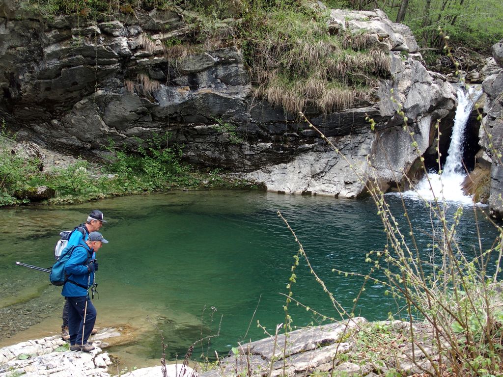 Poti in steze ob Idriji so vodile v smeri njenih dveh izvirov pod vrhom Klobučarji, vijugale do tolmunov, slapov, korit in med postanki smo v njeni čisti vodi lahko videli kakor cekine lesketajoče prodnate kamenčke in kamne, pod katerimi imajo svoj dom potočne postrvi in raki. Na področjih, kjer je steza zaradi dežja v prejšnjih dneh zahtevala posebno pazljivost pri hoji, so glasovi pohodnikov potihnili ali pa utonili v bučanju voda pod nami.