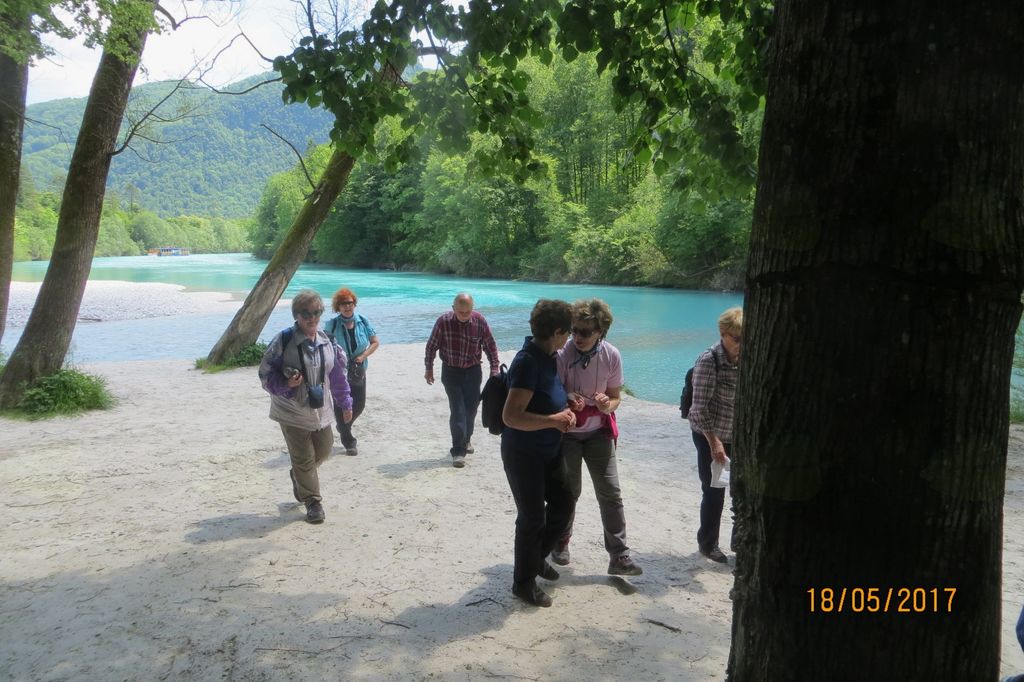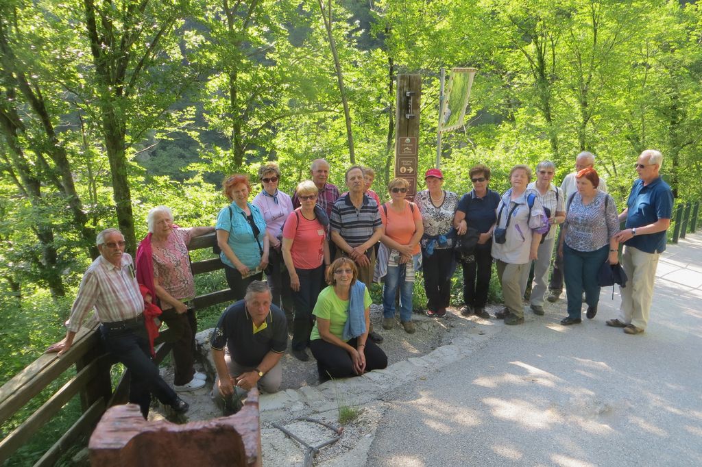 Skupina upokojencev z Vrhnike se je namenila pod vršace Julijskih Alp, v najlepše kraje ob reki Soči, v kraje s premnogimi zakladi in etnološkimi spomeniki iz preteklosti. Vozili smo se mimo mnogih semaforjev za urejanje prometa ob raznih delih na cestah in to je tudi dokaz, da se je že začela letošnja poletna turistična sezona.