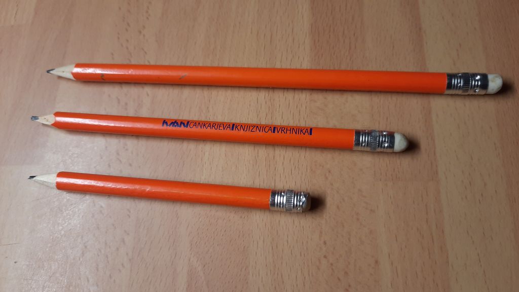 Hodila sem v peti razred osnovne šole na Vrhniki. Moj oče je bil v službi v pisarni Trgovskega podjetja Ljubljana, ki je imelo pisarno na Vrhniki in je skrbel za vse podružnične gostilne, trgovine in trafike v bližnji in širši okolici s tobačnimi izdelki in nekaj galanterije. Bil je zelo precizen, natančen in vesten pri svojem delu. Večkrat sem ga opazovala pri njegovem delu, kako je lepo in počasi pisal. Takrat se je pisalo samo z navadnim kopirnim svinčnikom. Imel je majhen nožiček in šilil svinčnike, kemičnih svinčnikov takrat še ni bilo. Ko se je svinčnik precej izrabil, je uporabil podaljšek, da je svinčnik izkoristil skoraj do konca. Znal je »šparati«. Uporabljal je tudi kopirni papir, ki se mu je reklo »indigo papir«. Ja, tako je bilo takrat.