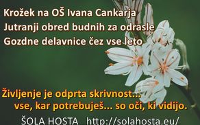 Šola HOSTA vabi k vpisu otroke in odrasle, ki hrepenijo po svobodi, miru in zdravju.