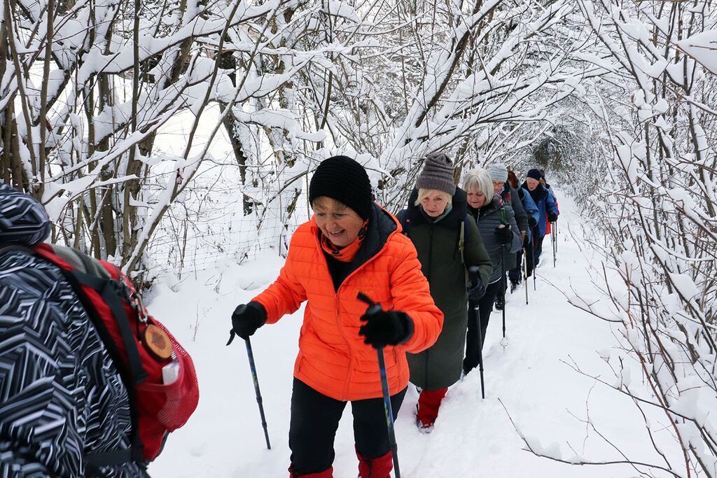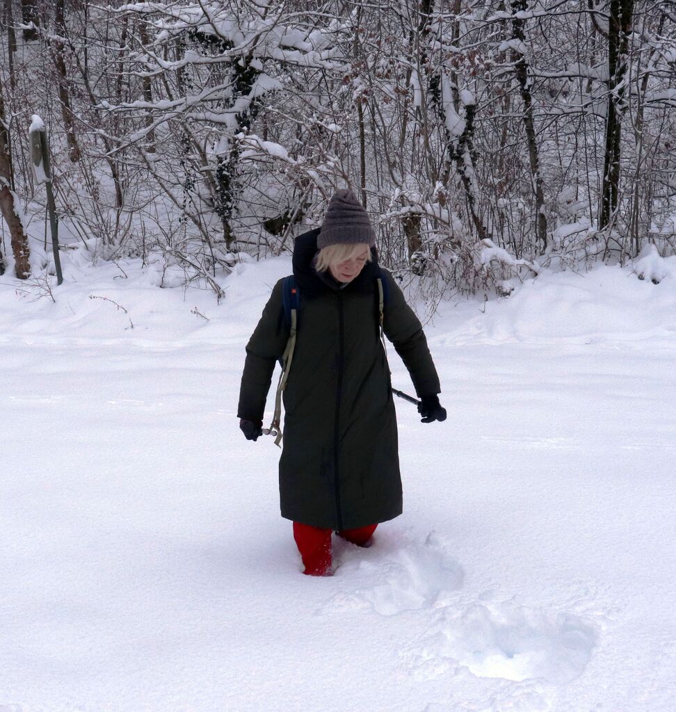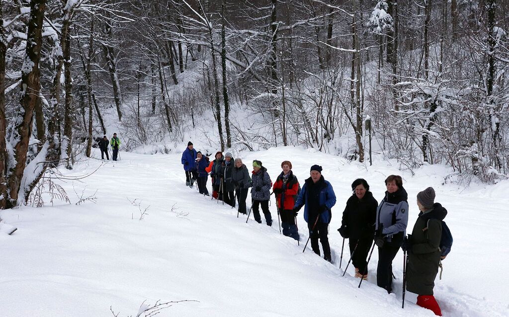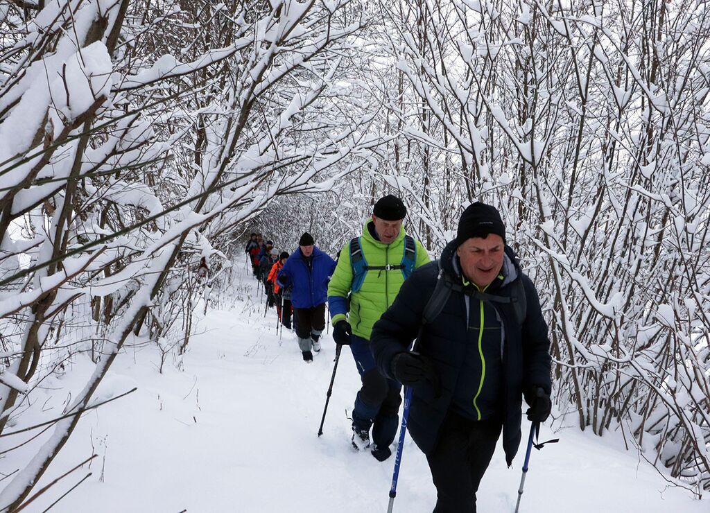 Do Jerinovega griča so sicer že bile stopinje, potem pa nas je v smeri Staj pričakala nedotaknjena belina. Ni bilo problema, saj smo bili opremiljeni z gamašami, Zoran pa je pogumno zagazil kot prvi. Navdušeni smo bili nad zimsko pokrajino in tišino, v kateri so le sem in tja odmevale naše besede.