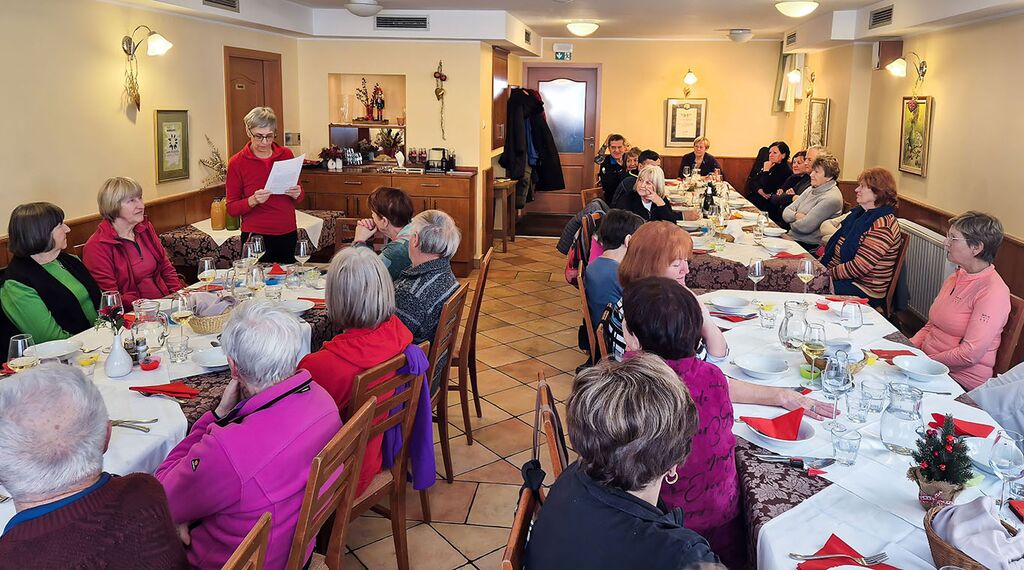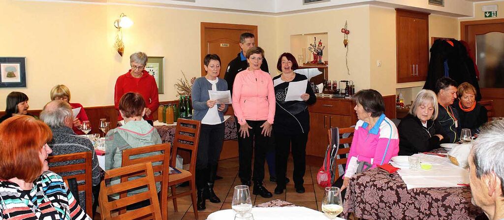 V gostilni so nas že čakali preostali Sončki. Zadonela je naša Himna, ki jo je ob 15-letnici sestavila Darinka Fabiani: