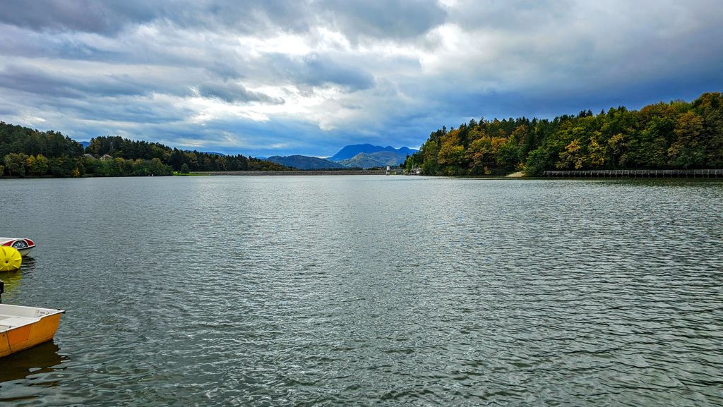Kmalu smo bili pri Čolnarni in gostilni, kjer smo si privoščili kratek počitek in opazovali drugi del jezera. Nato smo preko pontonskega mostu, ki je dolg kar 182 m, prišli do drugega nasipa, po katerem je speljan še en krak pešpoti. Treba pa se je bilo kmalu obrniti, ker poti zmanjka. Z zadnjimi pogledi na gladino jezera, v katerem so se lesketali posamični sončni žarki, smo se vrnili na parkirišče.