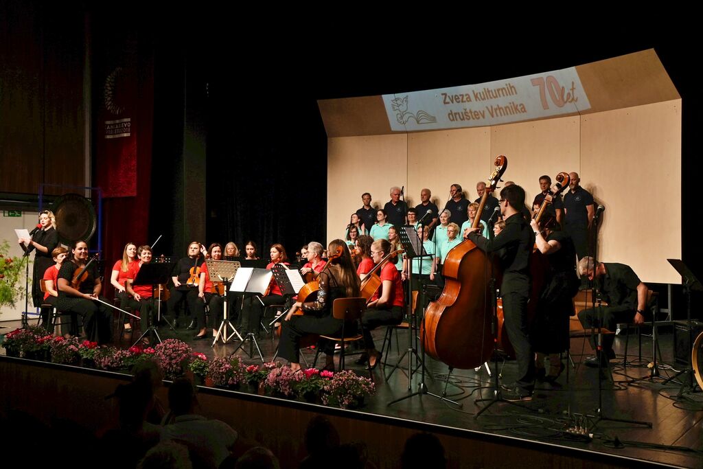 Vrhnika, 11. oktober 2025 – Člani Zveze kulturnih društev Vrhnika, v katero so vključena društva iz občin Borovnica, Log - Dragomer in Vrhnika, so častitljiv jubilej obeležili v vrhniškem hramu kulture – Cankarjevem domu.