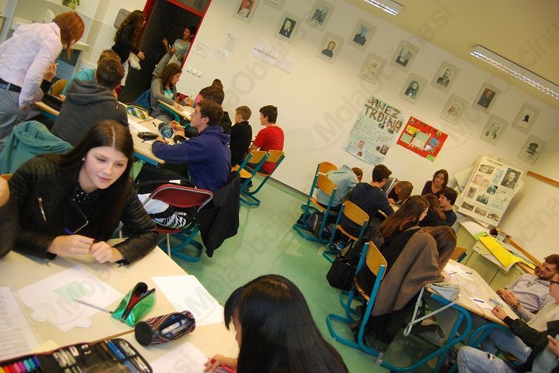 Tu pa se dogajanje delovne sobote še ne konča. Nekaj učencev od sedmega do devetega razreda, ki se zanimajo za podjetništvo, je sodelovalo pri programu razvijanja in izmenjave podjetnih idej, ki je tokrat potekal na naši šoli. V sklopu programa so se nam pridružile še Srednja ekonomska šola, Srednja šola za farmacijo, kozmetiko in zdravstvo in OŠ Oskarja Kovačiča, vse iz Ljubljane. Najprej so šole predstavile podjetne ideje iz preteklih let, nato pa so se učenci ne glede na starost ali šolo razdelili v skupine. Vsaka skupina je morala narediti svojo vizitko, selfie, napisati, kako bi se znašli v različnih problemskih situacijah ter izbrati in promovirati svoj izdelek. Učenci in dijaki so bili zelo izvirni in uspešni, manjkal pa ni niti čut za estetiko. Povedali so, da radi sodelujejo skupaj. Mlajši so bili očarani nad znanjem starejših, starejši pa presenečeni nad izvirnimi idejami mlajših. Po končanem delu je bil čas za predstavitev izdelkov. Mladi podjetniki so hudomušno, vendar profesionalno promovirali naslednje izdelke: klobuček za zaščito proti soncu, palčko za selfie, kemični svinčnik, ključe s čipom za iskanje ob izgubi, starejši telefon za starejše ljudi, peresnico, stojalo za lepilni trak v kompletu s tremi lepilnimi trakovi, označevalec besedila z oddajnikom Bluetooth, kislico z naravnimi sladkorji ter ročno narejen iPhone, naravnost iz rok Stevea Jobsa. Od vseh predstavitev so mentorji za najpodjetnejšo izbrali 1. promocijo, in sicer predstavitev poletnega klobučka, ki ga je predstavila osmošolka naše šole Mala Pika Grom.
