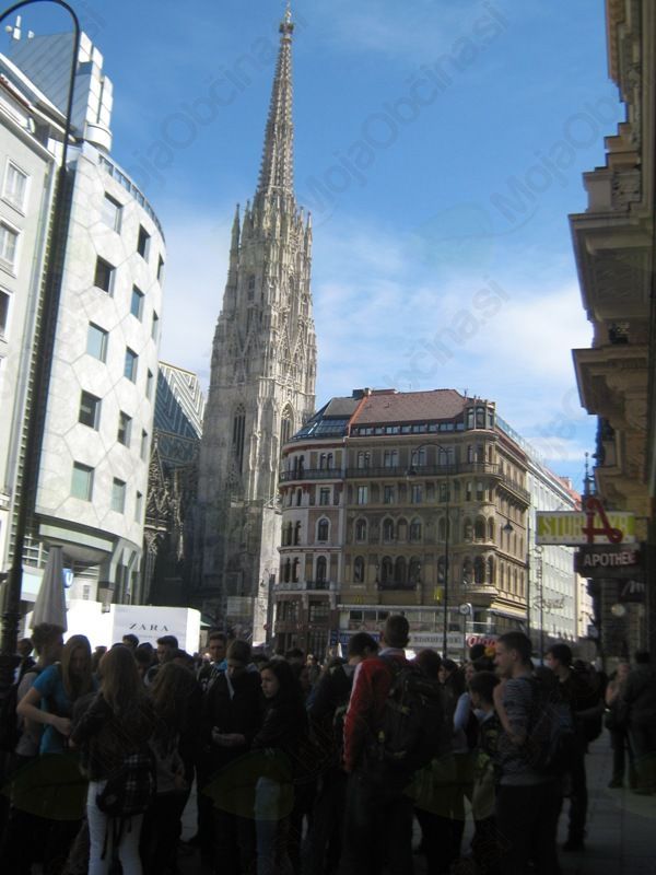 Ko smo prišli v center Dunaja do Ringa, smo bili vsi že pošteno zbujeni in polni energije. Iz avtobusa smo si ogledali mestni park, parlament, mestno hišo in druge pomembne mestne stavbe. Stavbe so videti stare, mogočne in z bogato zgodovino. Zelo so me zanimali tramvaji, ki jih na Dunaju kar mrgoli na vsakem vogalu. Zdi se mi, da je to dober način za prevažanje po tako velikih mestih. Zanimiva izkušnja bi bila, da bi se vsaj enkrat peljali s tramvajem, vendar za to na žalost ni bilo priložnosti. Učiteljica nam je razlagala o znamenitostih Dunaja, vendar zavzetih poslušalcev ni bilo veliko. Avtobus nas je pripeljal do mestnega parka in nas tam odložil. Peš smo se odpravili do cesarske grobnice, kjer so pokopani Habsburžani. Kot nam je učiteljica razložila, so to naredili s posebnim protokolom, katerega namen je bil, da se pokoplje cesarja ne kot vladarja in nekoga, ki je nad ljudmi, ampak kot navadnega človeka, ki dela napake kot ostali. Pokopani so v mogočnih kamnitih sarkofagih, ki so bogato okrašeni. Sarkofage krasijo tudi kipi, ki naredijo še poseben vtis. Za tem smo se peš odpravili do cerkve sv. Štefana, ki je simbol Dunaja. Cerkev je zelo visoka, njen najvišji stolp je visok kar 137 m. Zunanjost cerkve je bogato okrašena in ima veliko podrobnosti, ki jih v cerkvah na slovenskem težko najdemo. Cerkev je zgrajena v gotskem slogu. Ko smo vstopili v cerkev, je bilo v njej temno zaradi barvnih oken, ki prepuščajo le malo svetlobe. Zunanjost cerkve je name naredila večji vtis kot notranjost. Po ogledu cerkve smo imeli nekaj časa zase, ki smo ga lahko preživeli, kakor smo hoteli. Zelo mi je bilo všeč, da smo sami lahko raziskovali in se sprehajali po tem velikem mestu. Na Dunaju je prava mešanica ljudi s celega sveta, ulice so polne turistov, mesto je čisto in urejeno. Na poti proti Karlovi cerkvi smo si ogledali še prodajalno znamenite sacher torte. Originalne dunajske torte so bile tako drage, da si jih ni nihče privoščil. Po poti smo videli veliko tramvajev, ki so švigali po mestu. Ko smo prišli do Karlove cerkve, sem imel občutek, da sem v Rimu, saj je bila cerkev zaradi kupole zelo podobna baziliki sv. Petra. Zgrajena je baročnem slogu. Peš smo kmalu prispeli do dvorca Belveder. Dejansko sta to dva znamenita dvorca:  zgornji in spodnji Belveder. Med njima je dolg park z vodometom, ki pa na žalost ob našem obisku ni deloval. Zvečer smo si v restavraciji privoščili skupno večerjo. Ker smo bili utrujeni od celega dne in temu primerno tudi lačni, nam je večerja zelo teknila. Celo meni, ki sem ponavadi zelo izbirčen. Z avtobusom smo se pripeljali do hotela zunaj mesta, kjer smo prenočili. Sobe so bile zelo prostorne in čudili smo se nad udobnostjo kopalnic. Kljub želji po nočni zabavi in klepetu smo kmalu utrujeni zaspali.