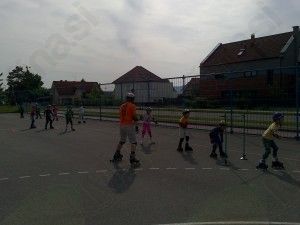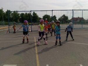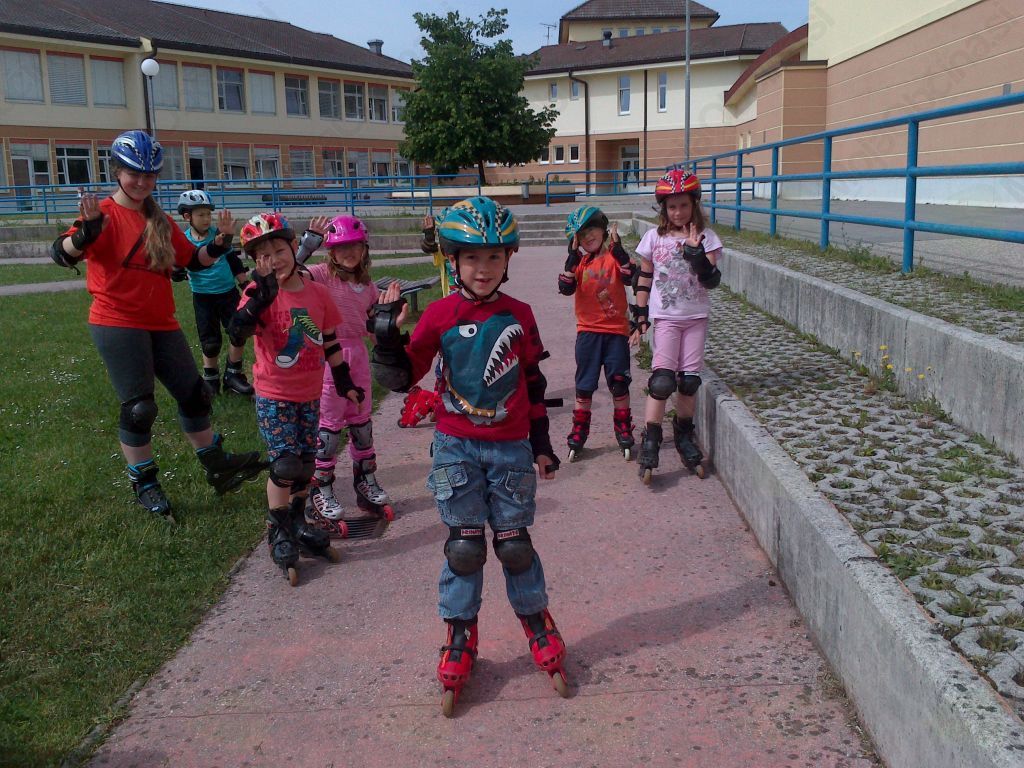 V sredo, 13. 5. 2015, je bil za nas, prvošolce, prav poseben dan. Imeli smo dan za rolanje. Nekateri smo rolarje nataknili prvič, drugi pa smo z njimi že zelo spretni. Nadeli smo si čelade, ščitnike in rolarje ter se zbrali na šolskem igrišču. Tudi začetniki smo po prvih korakih in igrah na travi uspešno zarolali še na asfaltu. Vaditelji so postavili več zanimivih poligonov, kjer smo preizkušali in utrjevali svoje znanje rolanja. Zelo nam je bil všeč hokej, kjer pa smo morali pokazati že kar veliko spretnosti. Dopoldne je hitro minilo. Utrujeni smo se vrnili v šolo in komaj čakamo, da si zopet nataknemo rolarje in se zapodimo novim dogodivščinam naproti.