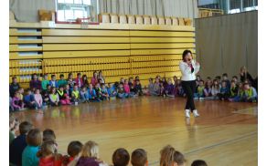 V četrtek, 9. 4. 2015, ob zaključku bralne značke je naše najmlajše bralce, učence od prvega do tretjega razreda, obiskala pisateljica Mojiceja Podgoršek. Avtorica številnih pravljic za otroke, kot so na primer Pajek Feliks in muha Enodnevnica, Podgana Pregnana na obisku, Kokoška Taja, Čarovniška šola itd., je na humoren način pripovedovala o svojih otroških vragolijah in pisateljski poti. Podgorškova, ki pravi, da veliko idej za svoje knjige najde prav pri delu z otroki, je naše učence izzvala z zabavnim kvizom in zanimivimi vprašanji iz svojih pravljic. Otroci so kar tekmovali med seboj, kdo bo prvi odgovoril. Na koncu je svoje »največje oboževalce« nagradila še z avtogramom.