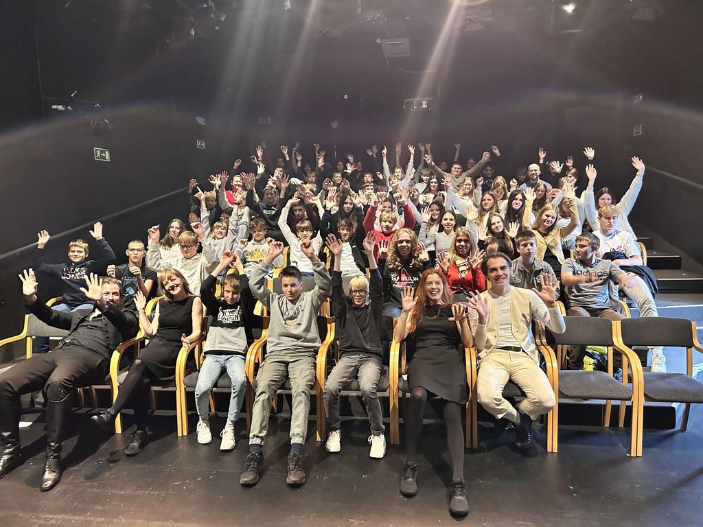 kjer so si ogledali predstavo z naslovom Teater za telebane. Po predstavi so se učenci pogovarjali z