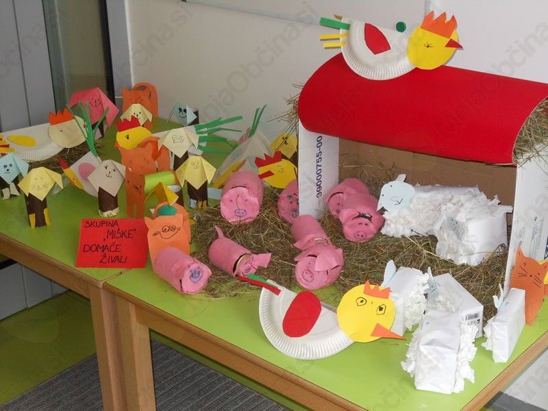 Otroci so od doma prinašali slikanice, enciklopedije, reklame, in druge slike o domačih živalih. Naredili smo plakat, kjer so razvrstili domače živali glede na njihova bivališča. Ob tem smo se o njih pogovarjali in jih spoznavali. Otroci so aktivno sodelovali pri vseh ponujenih dejavnostih iz področja umetnosti in jezika. Tako smo izdelovali domače živali iz različne odpadne embalaže, kot so tulci, škatle, stekleni kozarci, papir. Preko pantomime so otroci z gibanjem posnemali žival,v glasbeno didaktičnih igrah pa tudi z glasom. Na Stari Vrhniki smo si ogledali kmetijo in pokukali v hlev s kravami, biki in telički. Prebrali smo veliko pravljic o domačih živalih in si ob tem razvijali besedni zaklad, manjkala pa ni niti plesno gibalna igra, pesmica in deklamacija.