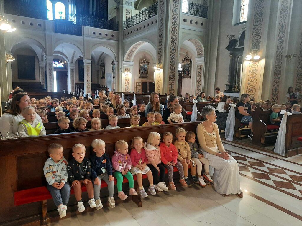 V našem vrtcu novo šolsko leto pričnemo tudi tako, da se vsi zberemo v cerkvi. Tako je bilo tudi letos. Med mašo nas je nagovoril g. Mohor in gospa ravnateljica Saša, z otroki pa smo ob spremljavi kitare na ves glas prepevali. Prošnje in zahvale so bile iz otroških ust in ob njih smo se lahko tudi nasmejali. Prosili smo za zdravje in da bi imeli veliko prijateljev ter da bi naši košarkarji čim večkrat zmagali. Zahvalili pa smo se za to, da imamo streho nad glavo, za igrače, za starše ter tudi za ovce, ki nam dajejo volno, da imamo potem obačila. Ena izmed prošnj pa se je glasila: »Prosim, Bog, da bi bilo maše čimprej konec.« 😊Ta prošnja se nam je zelo hitro uresničila.