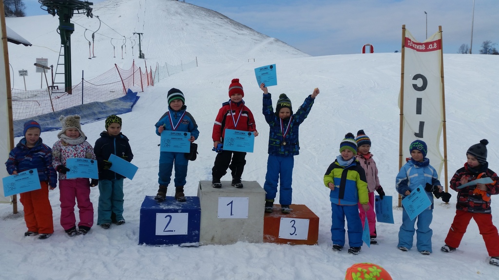 Po veselem, prazničnem vzdušju, so nas 6. januarja obiskali še koledniki. To so bili otroci najstarejše skupine, ki so se, oblečeni v kralje in z dragocenimi kronami na glavi, podali po vrtcu. Če so pravi kralji Jezusu prinesli dragocene darove, tudi mi nismo smeli zaostajati. Tako smo v skupine s pesmijo prinašali veselje! Veselje nam je bilo hitro povrnjeno. Januar nam je namreč nasul novih radosti – sneg! Ne glede na to, kako pomembna tema je bil sneg v sklopu posameznih skupin, smo mu vsi posvečali več ali manj pozornosti. Bele tančice se namreč ne da spregledati. Tako smo se nekateri sankali, bobali, lopatali in iskali različne načine, kako priti najhitreje po klancu iz gornjega na spodnje igrišče. Še več snežnih »vragolij« pa so se domislili Sončki in Lune, ki so v sklopu zimijade na snegu izumljali različne igre. Ampak veste, nekateri znajo tudi že smučati! In to res ni kar tako. Prvič so se otroci našega vrtca odpravili na smučarski tečaj v Šentjošt. Udeležili so se ga večinoma otroci iz skupine Zvezde in nekateri otroci iz skupine Isker in Plamenov. In na koncu so imeli otroci čisto pravo tekmo: s štartnimi številkami, pripravljeno progo, športnim komentatorjem in medaljami za zmagovalce v vsaki skupini. To je bilo res posebno doživetje! No, upamo, da ste tudi vi izkoristili snežne radosti, ker mi smo definitivno jih.