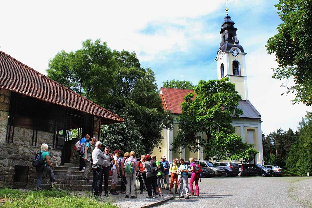 Ob napovedanem popoldanskem poslabšanju vremena smo se 7.6. zatekli v senčni gozd Dobrunjskega hriba, ki nas je delno obvaroval nadležne sopare. Naš cilj je bila po slemenu razložena vasica Orle, znana izletniška točka Ljubljančanov. Vzpon smo pričeli pri cerkvi sv. Urha, ki je bila med 2. svetovno vojno povezana z zloveščim slovesom nasilja nad ujetimi partizani, sodelavci OF in zaporniki iz ljubljanskih zaporov. Ogledali smo si spominsko razstavo v prostorih mežnarije in spomenik nad grobnico žrtev.