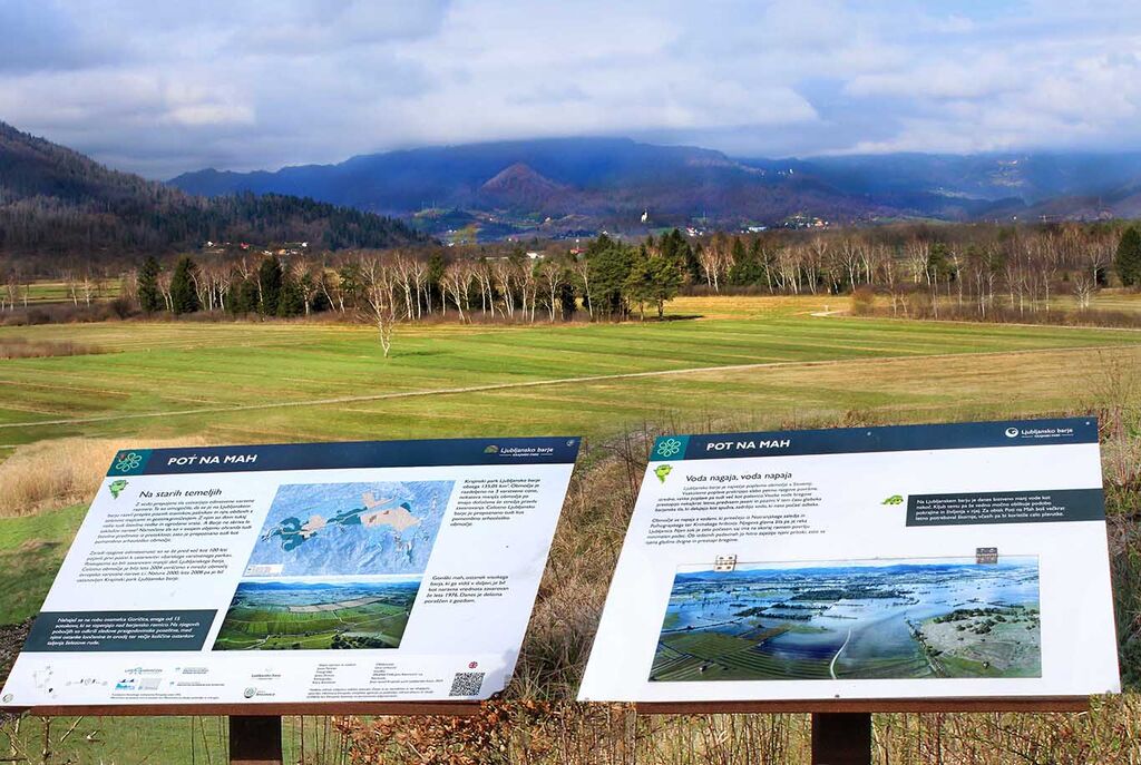 Ob poti je več informativnih tabel o značilnostih okolice in živalih, ki jo naseljujejo, opazovalnica za ptice in učilnica v naravi. Table so nam pripovedovale o nastanku Ljubljanskega barja, njegovi preobrazbi v kulturno krajino, h čemur je veliko pripomogla že Marija Terezija, ki je ukazala kopanje jarkov na barju in s tem osuševanje dela barja ter pridobivanje obdelovalne zemlje. Barje sicer ni postalo žitnica za Ljubljano, kot je cesarica imela v načrtih, je pa z drugimi poljščinami in travniki pomembno za kmetijstvo, tudi še v današnjih časih. Ker pa se je skozi daljše obdobje razvilo zavedanje o pomembnosti mokrotnih travnikov in živali ter rastlin, ki živijo na tem prostoru, tako z vidika biodiverzitete kot vpliva na človeka, njegov življenski prostor in prostor ostalih živih bitij, so bili sprejeti številni ukrepi, ki naj bi ohranili dediščino, ki jo je skozi čas oblikovala narava.