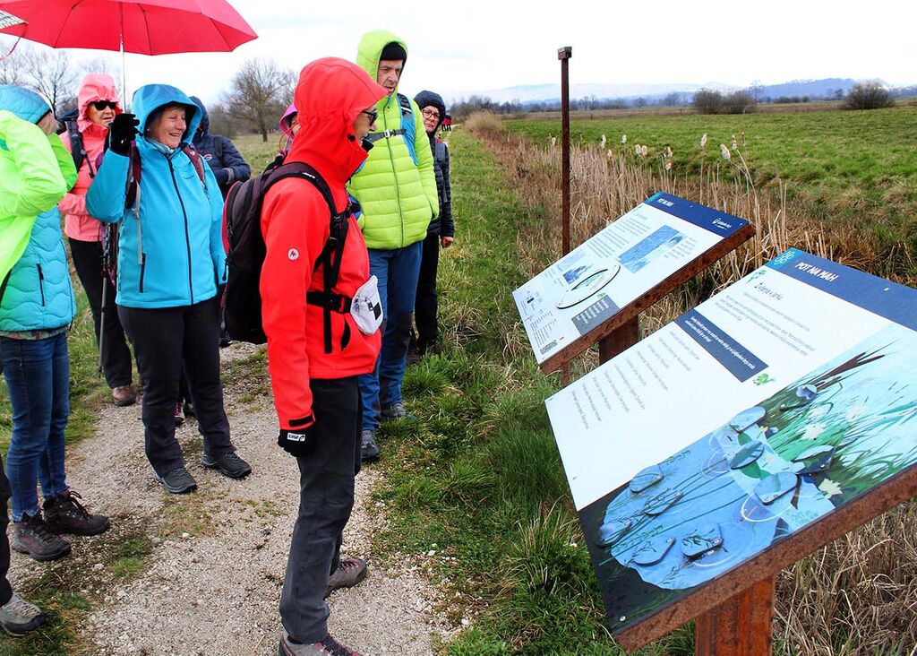 Hodili smo od postaje do postaje in vsaka izmed njih pripoveduje neko zgodbo. Med najbolj priljubljenimi in povednimi postajami sta opazovalnica za ptice ter učilnica v naravi z interaktivno Žabecedo, ki omogoča spoznavanje sveta dvoživk in njihov pomen v ekosistemu. Bili smo deležni dodatnih razlag naše vodnice Sonje, tako o šotnem mahu, o šoti in njenem izkoriščanju, o originalnih drevesnih vrstah: brezi, hrastu dobu in rdečem boru, o problemu invazivnih tujerodnih vrst. Razveselili smo se številnih logaric, ki so nas pozdravljale ob poti.