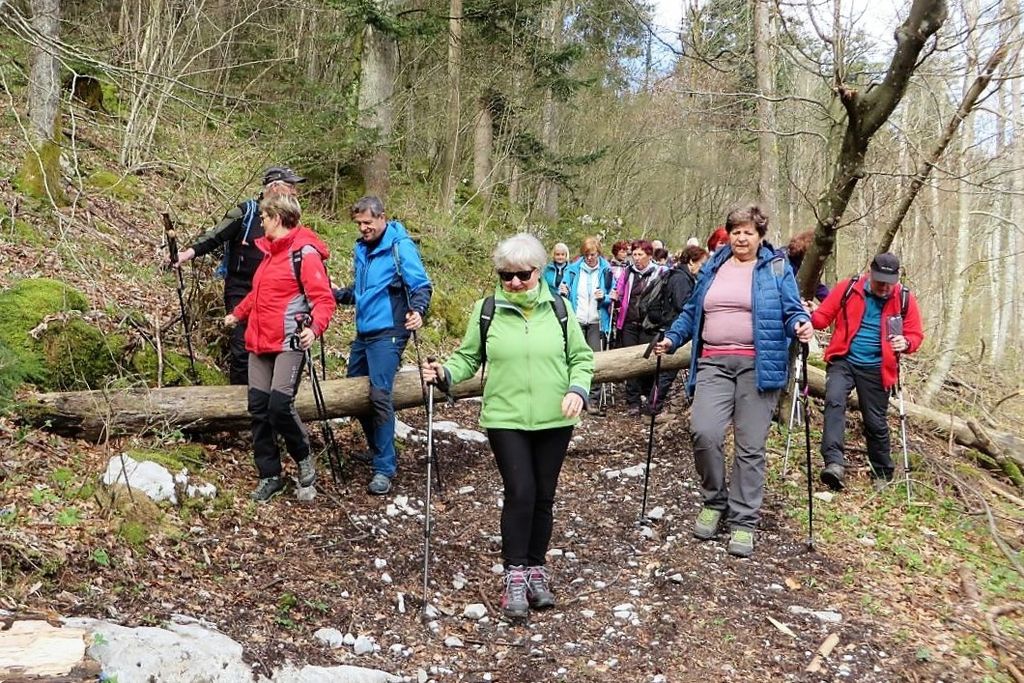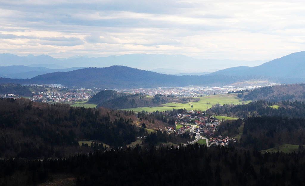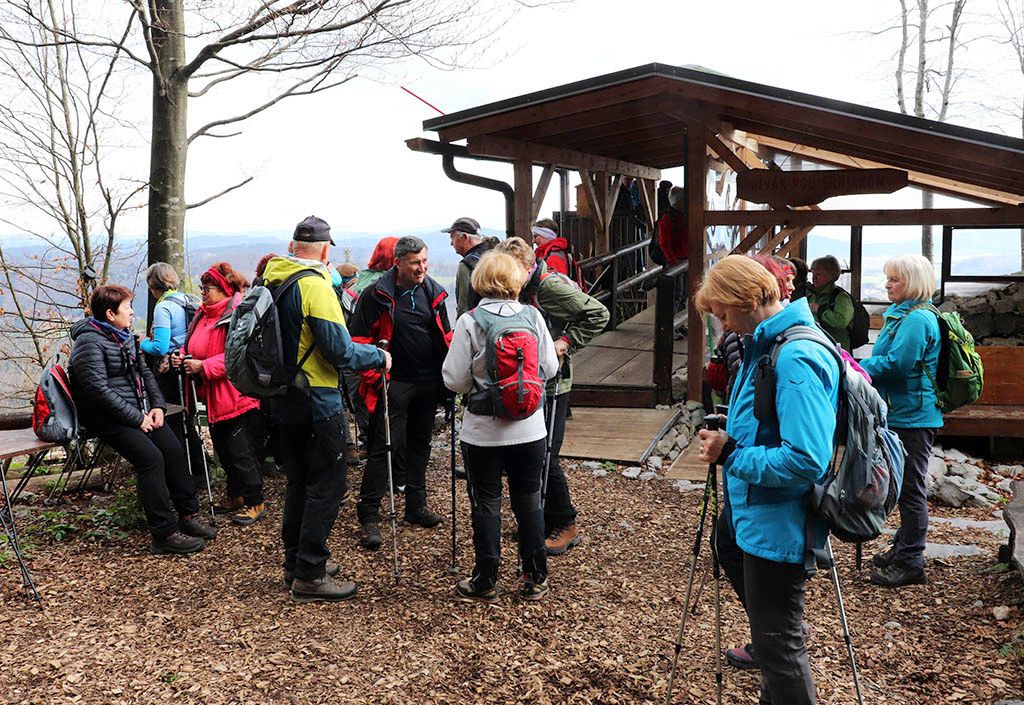 Spremljali so nas goloseki smrek in jelk, ostanki drevesnih štorov so sramežljivo razkrivali valoviti kraški svet vrtač in podzemnih jam, vejevje na kupih pa je dišalo po mokroti in iglavcih. V objemu gozda se korak umiri in srce se sprosti ob enakomerni hoji v koloni po dva, v gozdu je človek sprejet, ne glede na rane, ki jih morda le ta ima, saj je v njem v preteklosti pustošil žledolom in vetrolom, zadnja leta pa še lubadar, a gozd se ne da, po mehki stezi pod visokimi smrekami, ki so obstala, smo se približali razgledišču pod Srnjakom in osupnili nad belino Julijcev, Bohinjsko-Tolminskih gora na severozahodu, se razveselili Blegoša z belo kapo in Kamniško Savinjskih Alp na severovzhodnem robu neba, vmes pa smo prepoznavali znane kraje v dolinah in s pogledi rahlo drezali v hrbet Ljubljanskega vrha in Krima, ja drugačna sta s tega zornega kota.