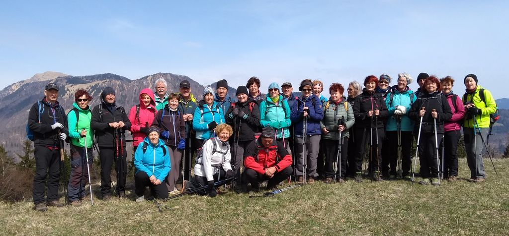 Hoja v melodiji vetra nas je po planinski poti vodila mimo ostankov italijanske kasarne na Vrhovčevem griču. Na razpotju smo zasopihali ob robu gozdne meje v kratki strmi del do razgledišča in bivaka pod vrhom Škofja, kjer je veter na mnoga leta bučno igral slavljencema, ko smo se krepčali s sladkimi in slanimi dobrotami ter se razgledovali po vrhovih Bohinjsko Tolminskih gora in vasicah pod nami.