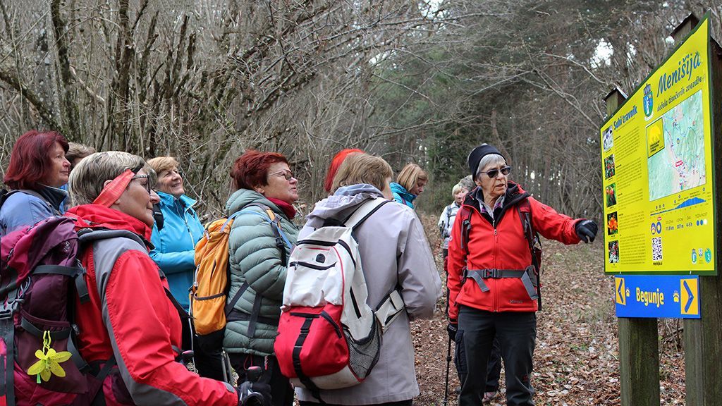 Na vrh Špičke, kot pravijo domačini, nas je vodila oznaka lokalne tematske poti Po medvedovih stopinjah. Vrh je na jugu porasel s travo, zato je z njega v lepem vremenu obsežen razgled. Nas je z vrha kmalu pregnal hladen veter, proti Begunjam smo se vračali preko Begunjskih Zalak (909 m), kjer so bili suhi travniki še pokriti s poležano lansko travo. Pomladnega cvetja skoraj nismo videli, na Menišijo še ni prišla pomlad. Planoti Menišija pravijo tudi dežela tisočerih zvezdic, po narcisah, ki se maja razcvetijo na njenih senožetih.