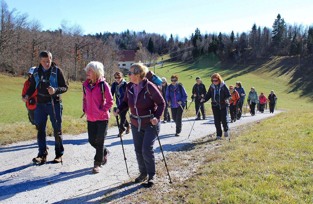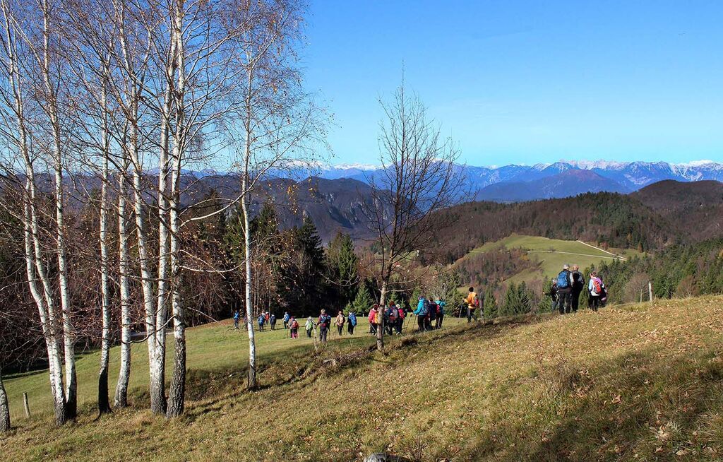 V povabilu na prvi novemberski pohod je naša vodnica Sonja zapisala: ”V dolini megla, na višinah sonce in širni razgledi”. In smo se zapeljali na Vojskarsko planoto, na njen južni rob nad dolino Trebuščice ter doživeli zapisano. Vojskarska planota sodi k Cerkljansko-Idrijskemu hribovju. Na vseh straneh obdajajo planoto globoke doline s strmimi bregovi, zato so vsi dostopi do planote, ki sega nad 1000 m visoko, dolgi in zelo strmi.