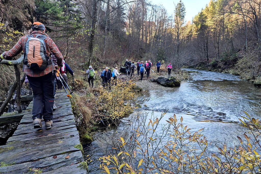 Od tu smo krenili proti kmetiji Gačnik, ki leži na delu planote, po kateri umirjeno teče potok Gačnik in na noben način ne nakazuje, da bo njegov tok v soteski imel povsem drugačen značaj. Tu smo tudi zaključili naš pohod.