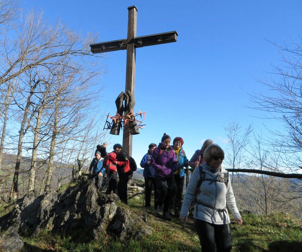 Gozdna pot nas je pripeljala na rob Vranjih peči, kjer stoji velik križ s spomisko ploščo Jožetu Geogheliju, župniku iz Zaplane, ubitem leta 1942. Vračali smo se po drugi strani v smeri proti Mizen dolu, po poti, kjer so na debla pritrjeni križi Križevega pota in videli precej ostankov nedavne sečnje ter pašnik s kravami. Usmerili smo se na cesto proti Smrečju in ves čas v daljavi lahko opazovali zasnežene vrhove Kamniško-Savinjskih Alp in posameznih delov grebena Košute v Karavankah.