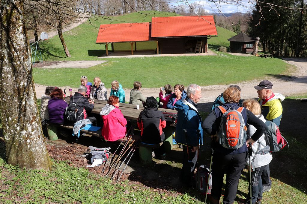 Postanek za malico smo imeli pri lovski koči LD Rovte, kjer smo tudi zapeli v čast rojstnega dneva dveh pohodnic.