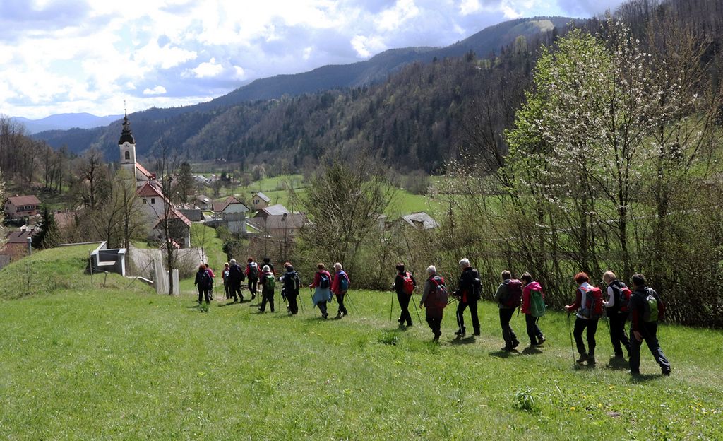 Mimo kmetije Jereb smo se po istoimenskem hribu in malce spolzki potki spustili proti Podlipi, na Boštjanovem griču naredili še skupinsko sliko s cerkvijo sv. Brikcija v ozadju in v Podlipi pri avtobusu sklenili naš pohod.