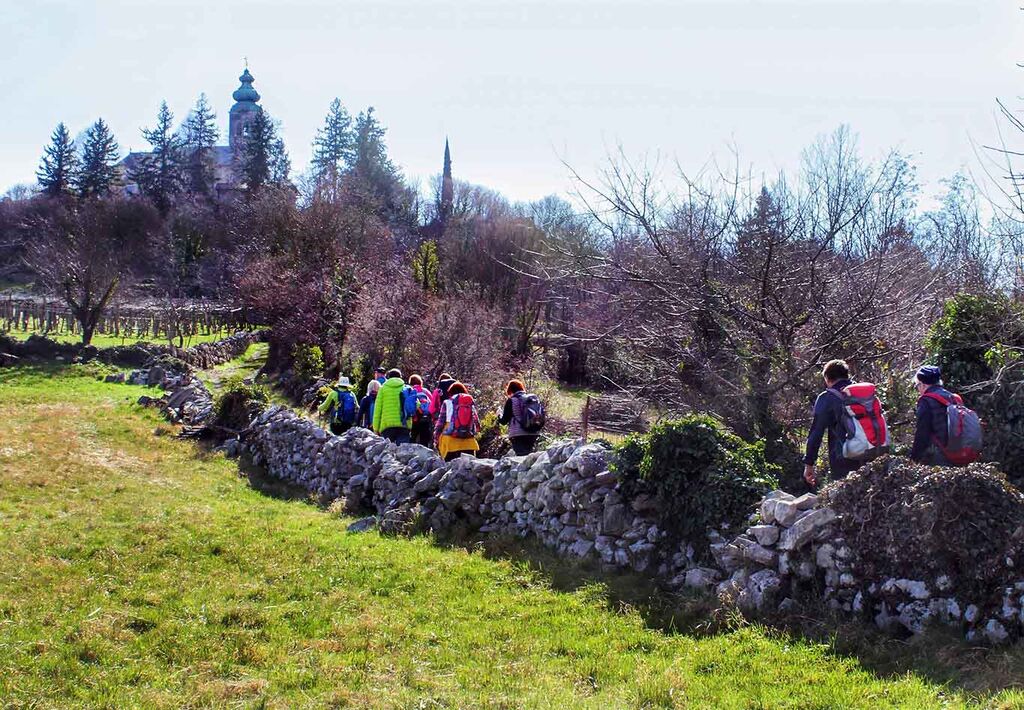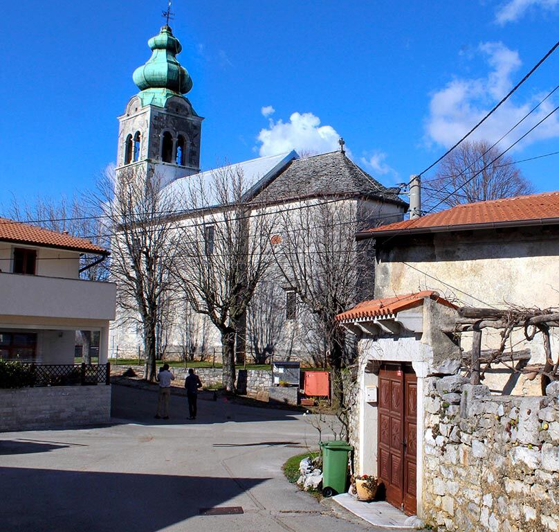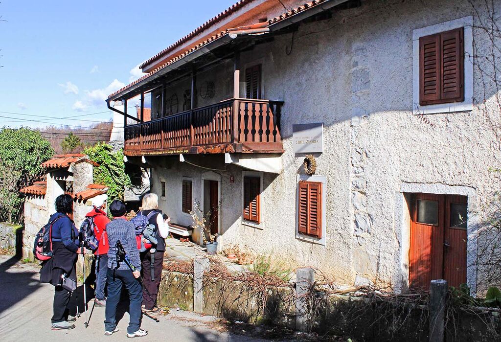 Fresk Toneta Kralja si na žalost nismo mogli ogledati, ker so bila cerkvena vrata zaklenjena. Še sprehod skozi Avbelj in že smo pri avtobusu, ki nas je čakal na robu vasi, zaključili pot po Krasu.