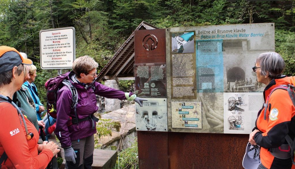 Pot nas je vodila najprej do Belčnih ali Brusovih klavž, obnovljenih leta 1991, nato pa še do Putrihovih klavž, obnovljenih 1992. Občudovali smo to mogočno delo človeških rok. Pregradi sta vpeti v obrežne skale, zgrajeni sta iz apnenčastih klesanih kamnov, povezanih s pucolansko malto (vulkanski pepel iz Italije). Klavže in vse povezano z njimi res zasluži našo pozornost in so bile vredne ogleda.