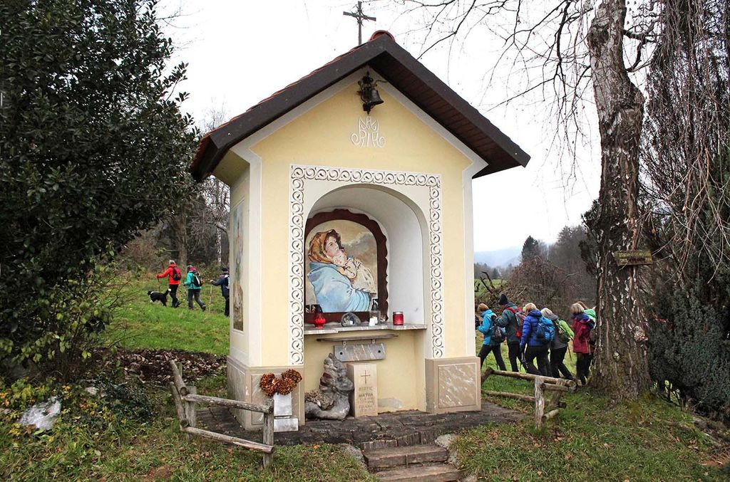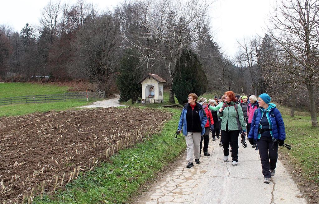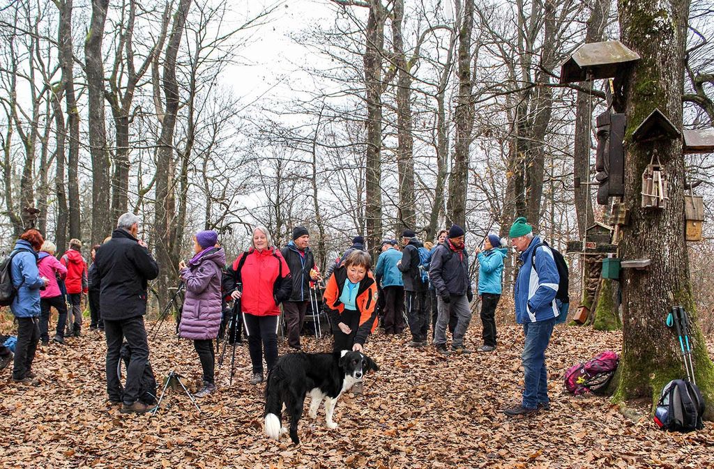 Na poznojesenski dan z značilno nizko oblačnostjo smo se Sončki odpeljali na Dobrovo. Pri osnovni šoli, kjer je dolgo obdobje poučevala naša vodnica Sonja, na kar jo vežejo lepi spomini, nas je pričakala njena nekdanja sodelavka Marta. Kot domačinka nas je skupaj s Sonjo varno vodila na »hišni hrib« Dobravčanov, na 602 m visoke Vrhe, vrh v JV delu Polhograjskega hribovja.
