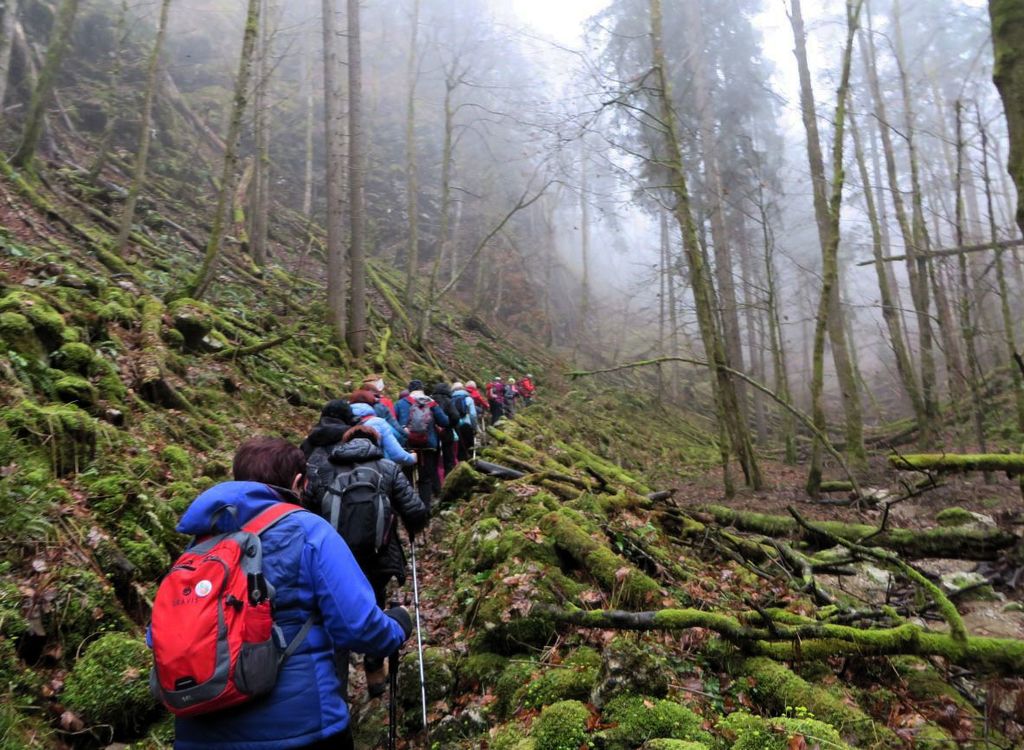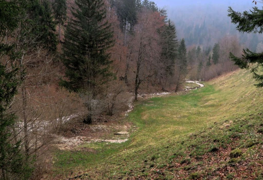 Iz megle je pričelo rositi, zatopljeni v iskanje varnih prehodov, smo se dvigali po grapi navzgor. Megla je ovijala drevesa pred nami, končno se je na levem pobočju prikazala gozdna pot, po kateri smo se povzpeli navzgor do asfaltne ceste proti Zatrniku. Navzdol je šlo, da bi skoraj potrebovali zavore in toplota koče nas je objela s toploto prostora in prijazne oskrbnice.