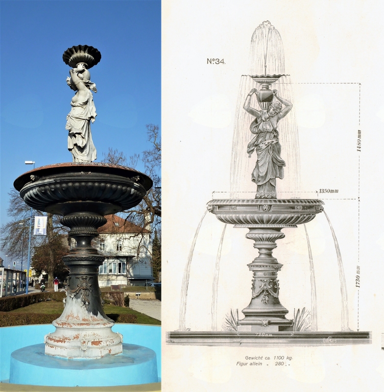 Izvajalec vodovodnih del je Vrhniki kot zahvalo za naročilo podaril litoželezni vodnjak, ki je bil ulit v Salmovi livarni v Blanskem na Češkem. Tu so s proizvodnjo litoželeznih vodnjakov pričeli v 2. polovici 19. stoletja in nadaljevali do prvih desetletij 20. stoletja, pri čemer se njihova oblika praktično ni spreminjala. Naročiti jih je bilo mogoče po katalogu in v vrhniškem primeru gre za model št. 34 iz Salmovega kataloga.