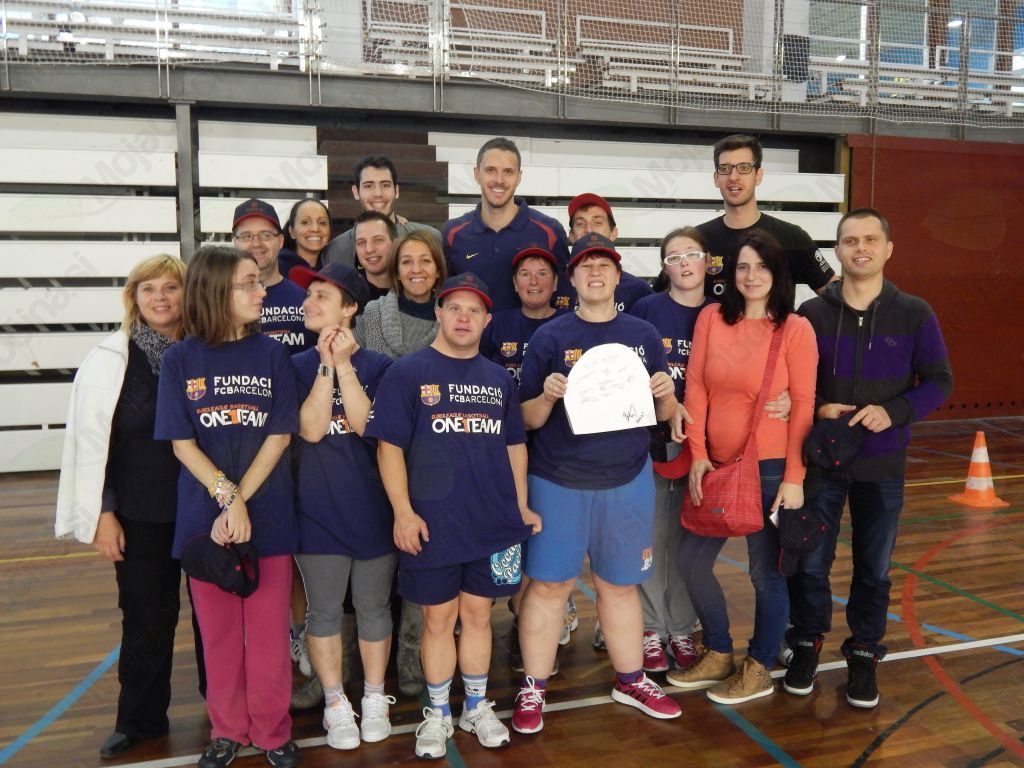 V Barceloni pa živi tudi košarkar Boštjan Nachbar, sicer odličen igralec FC Barcelone, s katerim  sodelujemo tudi v Sloveniji pri njegovem projektu »Življenje je košarka«, saj je namenjen tudi  osebam s posebnimi potrebami. Združili smo moči in ideje in tako obiskali tudi njegovo ekipo. Najprej smo se srečali in spoznali s člani skupine »One team project«, s katerim sodeluje tudi FC Barcelona z dobrodelnimi projektih, skupaj z Boštjanom Nachbarjem in drugimi. Naši  in španski uporabniki, sicer člani specialne olimpijade Katalonije, so pod vodstvom Boštjana Nacbarja in njegovega španskega kolega, perspektivnega mlajšega igralca Alexa Abrinesa, odigrali tekmo, se skupaj družili, se slikali  in si izmenjali darila. Ob temu srečanju se nam je pridružila tudi žena Boštjana, ga. Anka Nachbar, sicer Idrijčanka, ki je nas je prišla pozdravit in pokramljat z nami.  Naslednji dan pa nam je Boštjan uredil, da smo si lahko ogledali še stadion Camp Nou in njihov muzej. Zvečer nas je čakalo še eno presenečenje, saj nas je  (Boštjan&OneTeam) povabil na ogled tekme Evrolige med ekipama FC Barcelona in Panathinaikos Athens. Pred začetkom tekme smo se slikali še s celotnim moštvom FC Barcelona.
