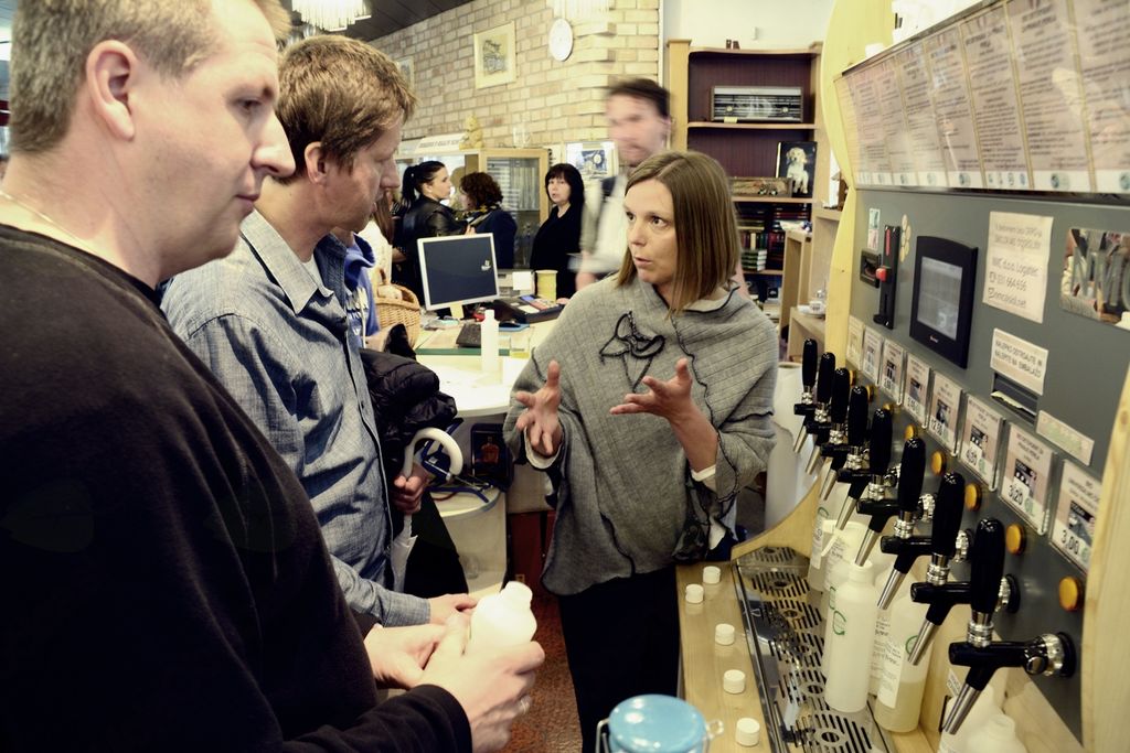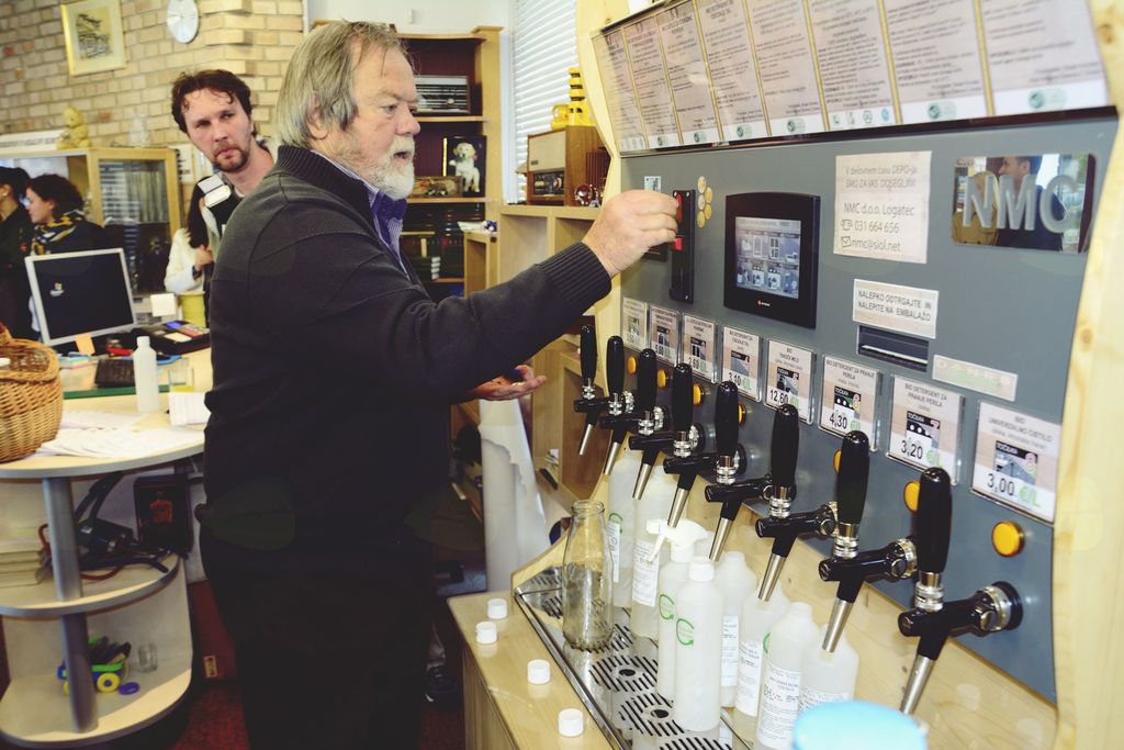 Kako rokujemo z avtomatom? Mojca Nagode iz podjetja NMC je pojasnila, da avtomat sprejema gotovino – bankovce ali kovance ter vrača drobiž. Izbiramo lahko med osmimi različnimi ekološkimi čistili in natočimo poljubno količino, saj lahko točenje prekinemo kadarkoli. Sledi račun in deklaracija, ki jo je potrebno nalepiti na embalažo. Slednjo lahko prinesemo s seboj, možno pa jo je dobiti tudi pri avtomatu.