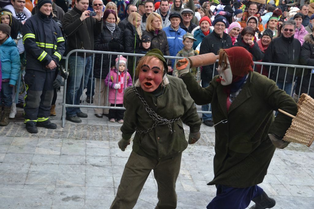 Osrednje dogajanje je potekalo na Sodnijskem trgu, kjer je zbrane maškarce najprej zabaval čarovnik Grega, nato pa se je začel težko pričakovani sprevod proti Stari cesti s pihalnim orkestrom na čelu – seveda so bili tudi pihalci večinoma v maskah. Zavodu Ivana Cankarja Vrhnika, ki je bil organizator dogodka, je tokrat uspelo privabiti v goste tri skupine iz Hrvaške, to so bili halubanjski zvončari, Mesopustari Kraljevice in maškare iz Dol-Krišišća. Zlasti zanimiva je bila prva, saj so nekakšni psoglavci, ki spominjajo deloma tudi na naše kurente, bili pravzaprav otroci. Veliko pozornosti je pritegnila tudi druga skupina, ki je po ulicah dobesedno poplesavala. Z mlinarjevo zgodbo so se predstavili člani TD Blagajana Vrhnika, sprevoda pa so se letos udeležili tudi stari mački v pustovanju – bevške maškare. Letos so si za osrednji motiv izbrale cerkveno hierarhijo: od papeža do menihov. Nikakor pa ni bilo mogoče spregledati gostov iz Cerkljanskega z značilno etnološko povorko  »Laufarji«. Uf, ko bi videli kako je »Ta stara« obdelala svojo pijano polovico…