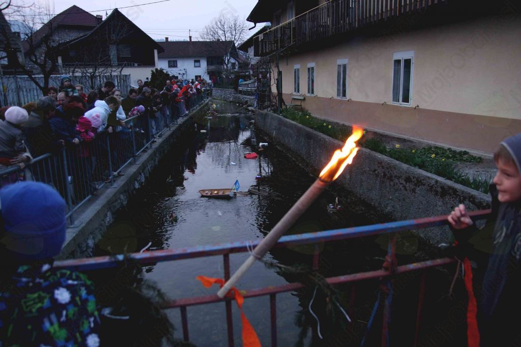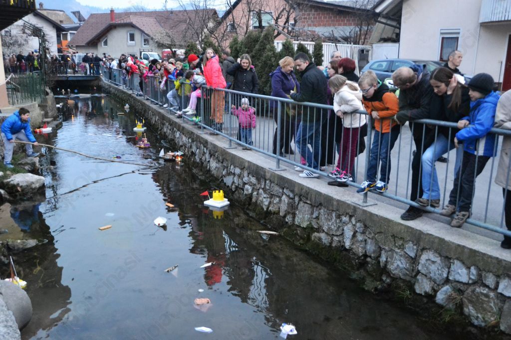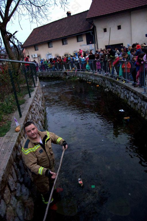 Vrhnika, 15. marec – Obrežje potoka Bele na Vrhniki je spominjalo na mravljišče, kajti sedaj že tradicionalnega spuščanja gregorčkov – ladjic, ki preganjajo temo – se je udeležilo na stotine občanov.