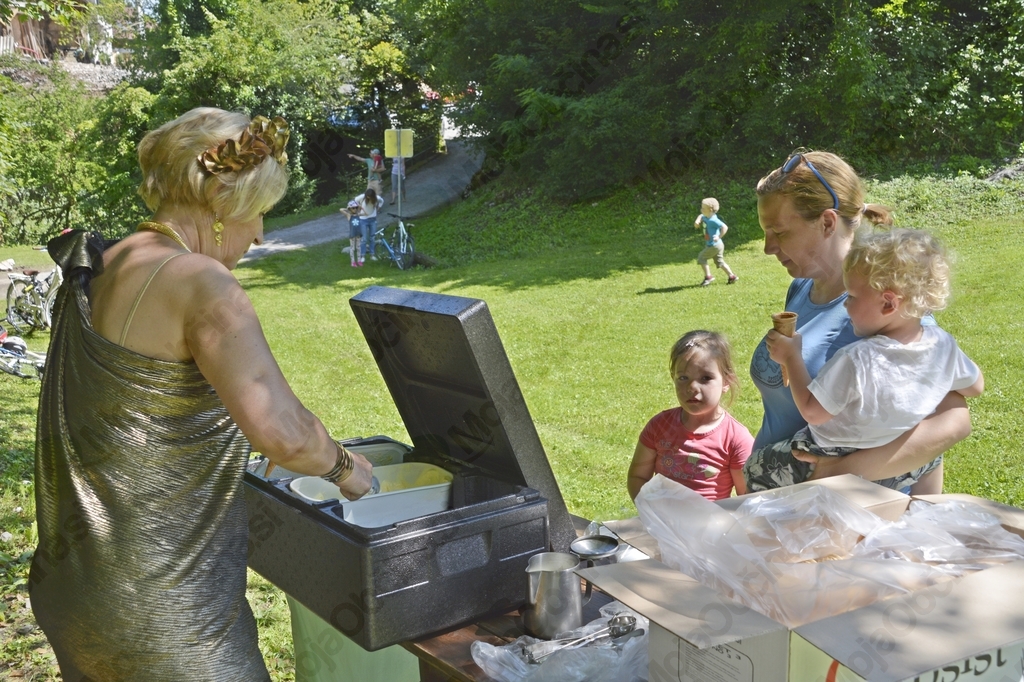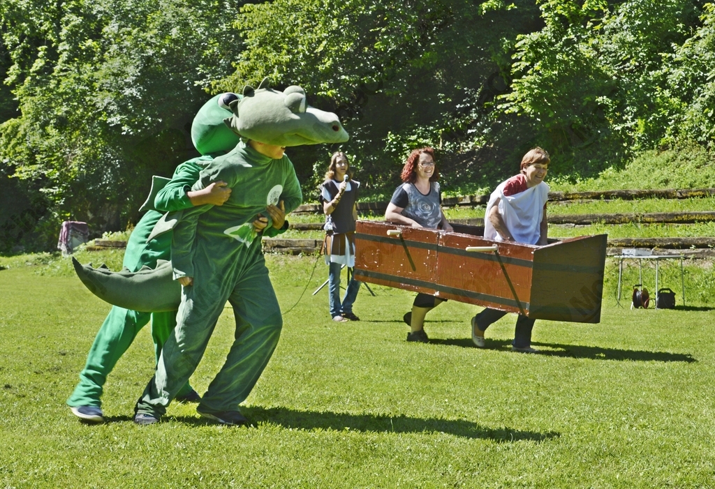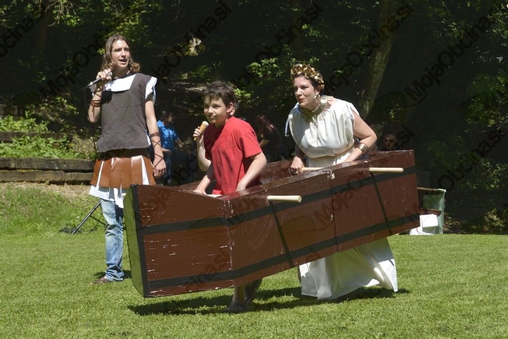 Prizorišče so prenesli streljaj stran od lanskega - v Matjaževko, kjer so v dogajanje ponovno vpletli zgodovino Vrhnike. Malčki in njihovi starši so morali tako kot nekoč Argonavti, prenesti ladjo iz ciljne črte do »skale«, nato pa je Jazon zaradi konca vodne poti iz silne jeze udaril v skalo. Prebudil je zmaja Lintverna, ki se je zapodil za argonavtsko posadko. Če ji je uspelo ubežati, je posadka prejela sladoled. Kot je pojasnil Boris Kononenko iz TD Blagajana, je zgodba enostavna, zato so jo otroci radi znova in znova odigravali. Sončna sobota je bila tako lahko dobro izkoriščena, čeravno bi morebiti nedelja obetala več obiska. A v luči slabe nedeljske vremenske napovedi, je bila sončna sobota kot naročena za takšne norčije… (gt, foto: gt)