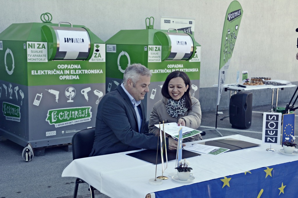 Kot je dejal direktor Zeosa Emil Šehić, gre za petletni program v vrednosti slabih dveh milijonov, ki bo potekal po celi Sloveniji. Trenutno so z uličnimi zbiralniki že pokrite občine zahodnega dela Slovenije, sedaj so začeli pokrivati še osrednjo. »Na koncu bo po Sloveniji okoli 600 tovrstnih zbiralnikov,« je dejal Šehić in dodal, da so se za ta korak odločili, ker odpadna elektronska oprema predstavlja okoli 8% vseh mešanih komunalnih odpadkov. Tovrstne zabojnike so že testirali in izkušnje so pozitivne, saj je v njih pristalo le malo drugih odpadkov – le okoli 5%. Cilj družbe Zeos je, da bi do leta 2020 na ta način zbrali kar 65% odpadne elektronike. Za dosego cilja bodo poleg zabojnikov po trgovskih centrih uvedli še zelene kote in bolj organizirano začeli nagovarjati tudi podeželja.