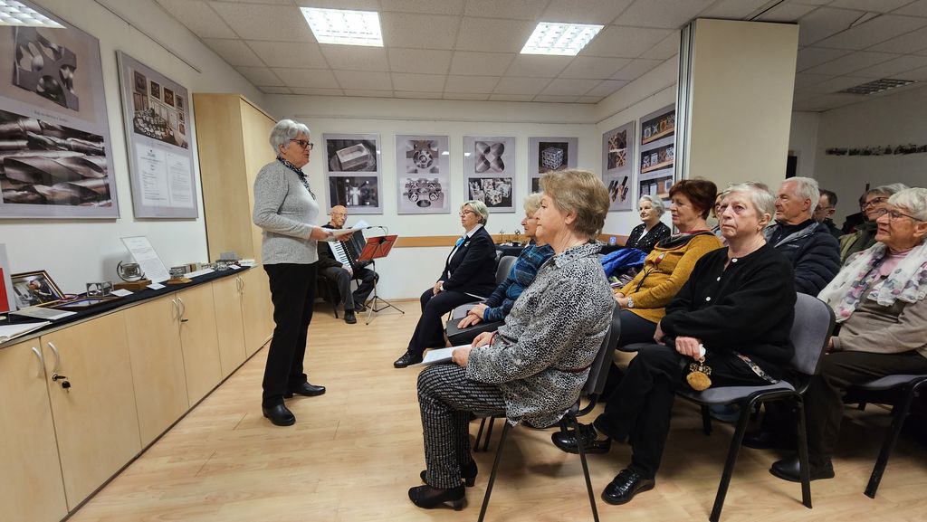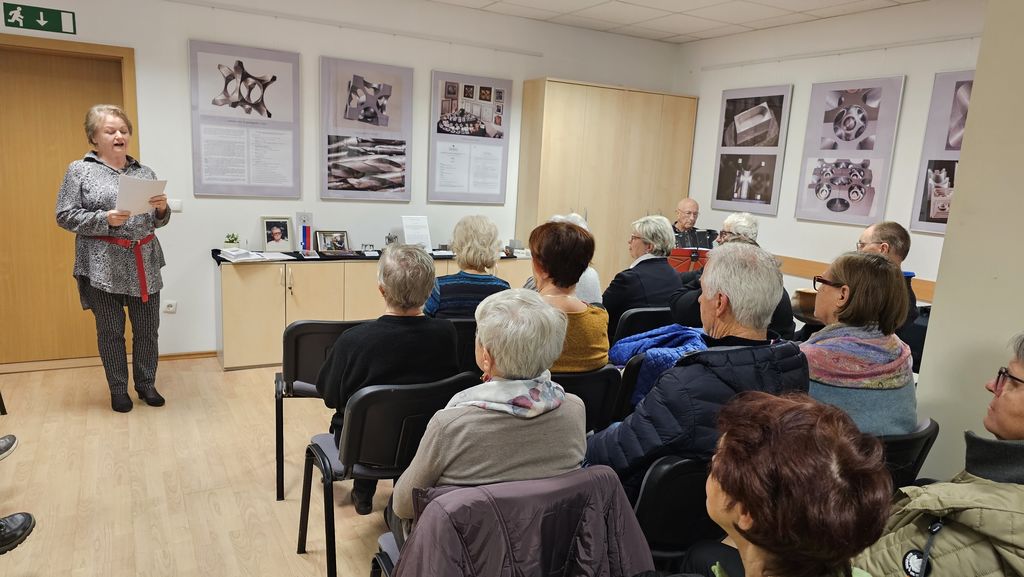 Odprtje razstave v prostorih Društva upokojencev je s sodelavci organizirala in tudi povezovala program Marta Rijavec.