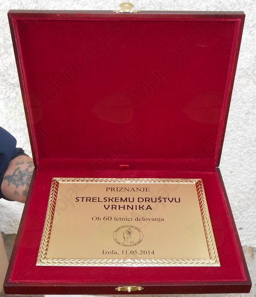 Na koncu prireditve je vsem udeležencem spregovoril še predsednik lige g. Enio Božič iz Izole, ki je vsem dobitnikom medalj čestital, strelskemu društvu Vrhnika pa ob jubileju izročil res prekrasno plaketo. Za udeležbo in športno tekmovanje se je zahvališ še predsednik organizacijskega odbora in predsednik SD Vrhnika Bojan Lampreht, in po pravici povedano komaj zadržal solze ob prejemu plakete (pa ne okol govort).
