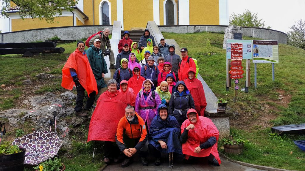 Zaradi praznika smo se tokrat podali na pohod v sredo. Za načrtovano Korado je bilo napovedano slabo vreme zato je vodnik Milan spremenil smer našega pohoda. Predviden je bil pohod na Goro Oljko nad Polzelo. Z avtobusom smo se odpeljali do Šmartnega ob Paki. Tu smo si nadeli nahrbtnike in krenili po cesti ob Hudem potoku in naprej proti Dobriču. Ob poti smo opazovali cvetje in prebujajočo naravo. V strugi hudourniškega  Hudega potoka nam je Milan pokazal lepo izdolbene vdolbine oz. kotanje imenovane draslje, ki so nastale z vrtinčenjem kamenja ob hudih nalivih dežja. Zaradi tega so tukajšnji prebivalci v strugi potoka naredili številne kamnite in betonske pregrade, ki omilijo hudourniške vode. Malo pred našim ciljem je pričelo rahlo deževati zato smo si nadeli dežnike in pelerine. Po približno dveh urah zložne hoje po delno asfaltni in makadamski cesti smo prispeli na vrh 733 m visokega kraškega osamelca, s katerega se v lepem jasnem vremenu vidi Posavsko hribovje, Paški Kozjak, del Kamniško Savinjskih Alp ter najjužnejši del Karavank. Le te smo videli le delno, saj je bila večina zavita v oblakih. V planinski koči na smo imeli za kosilo zelo dober ričet.