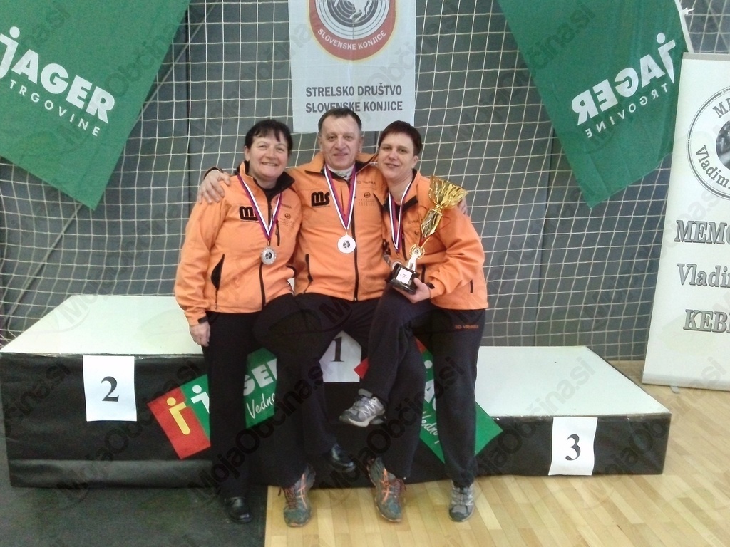 Prvo je bilo tekmovanje za Memorial Vladimirja Kebra, dolgoletnega strelskega delavca in prvega trenerja Bojana Lamprehta. Tokrat smo se v spomin nanj že tretjih udeležili spominskega tekmovanja in osvojili odličja. V odprti kategoriji OPEN, so lahko tekmovali vsi strelci ne glede na starost in spol. Z absolutnim rezultatom je prvo mesto osvojil Bojan Lampreht, ki se je tako oddolžil za podano znanje in trud v mladosti in da še vedno vztraja v tekmovalnem ciklusu. Drugo mesto je osvojila domačinka Fevžer Katarina in na tretjo stopničko je stopil legenda iz Celja Jože Jeram. Mojca Rus in Katarina Jilek sta bili na 7. oz. 8. mestu. Tudi v ekipni razvrstitvi je prvo mesto osvojila Vrhnika pred domačini in strelci iz Celja.