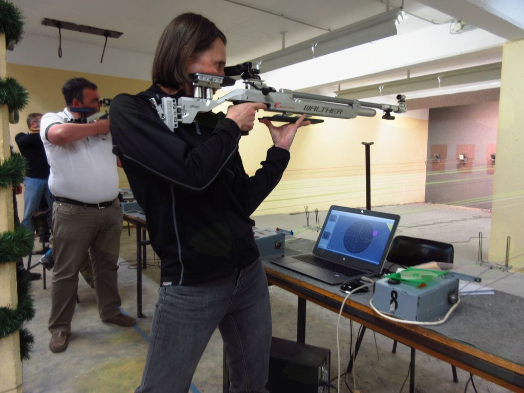 Naslednji petek smo se zbrali na strelišču v Velenju, kjer smo se v praksi seznanili z elektronskim merjenjem. Preizkusili smo sistem SCATT, kakršnega imamo tudi v domačem klubu, in naredili analizo svojega streljanja. Nikolaj Mejaš nam je predstavil streljanje na leteče tarče.