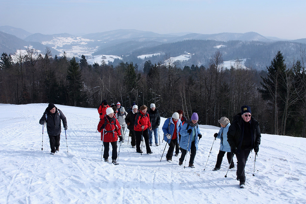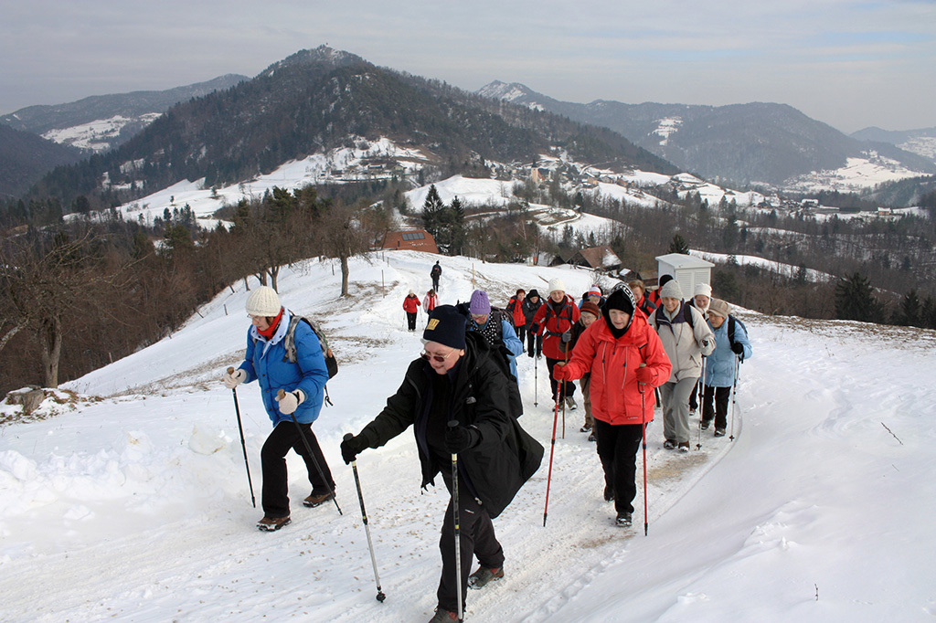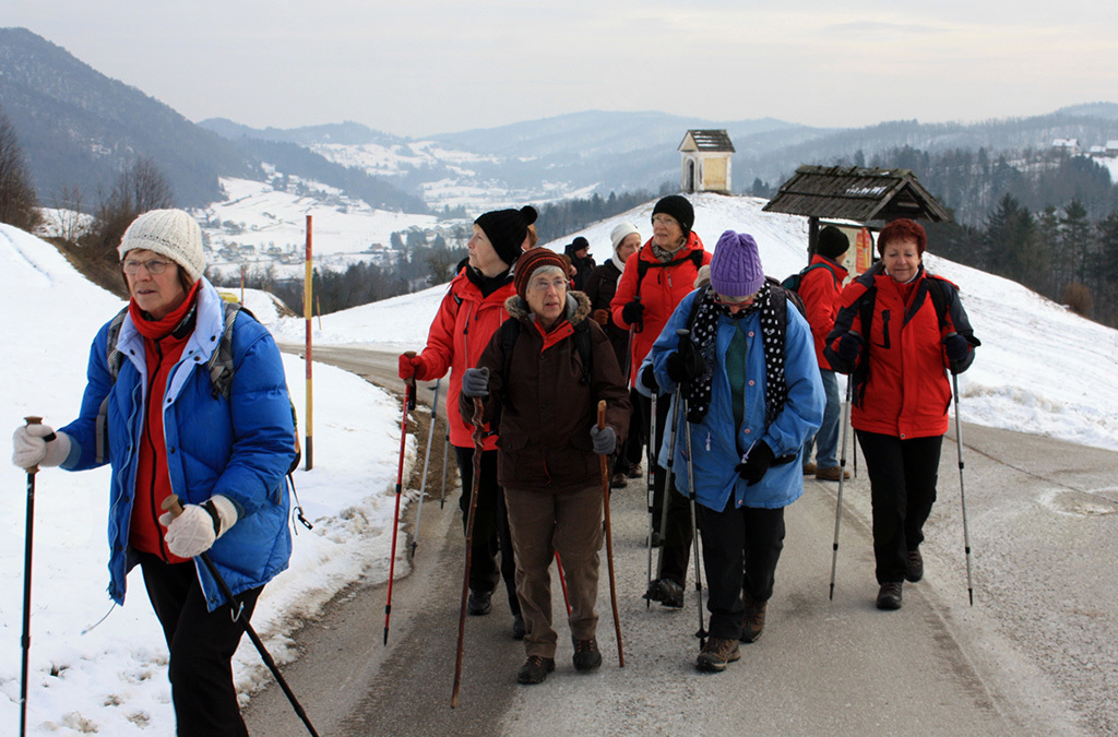 Januarja je tretji četrtek, na pohodni dan Svizcev, zima pokazala svoje ostre zobe in nas primorala, da smo spremenili cilj pohoda. Namesto na Šavrinsko gričevje, kjer je pihala močna burja, smo odšli v kraje v naši bližini, v Polhograjsko hribovje. Ker pa so med nami razsajale razne bolezni, nas je na pohod odšlo le enaindvajset dobro odetih pohodnikov.