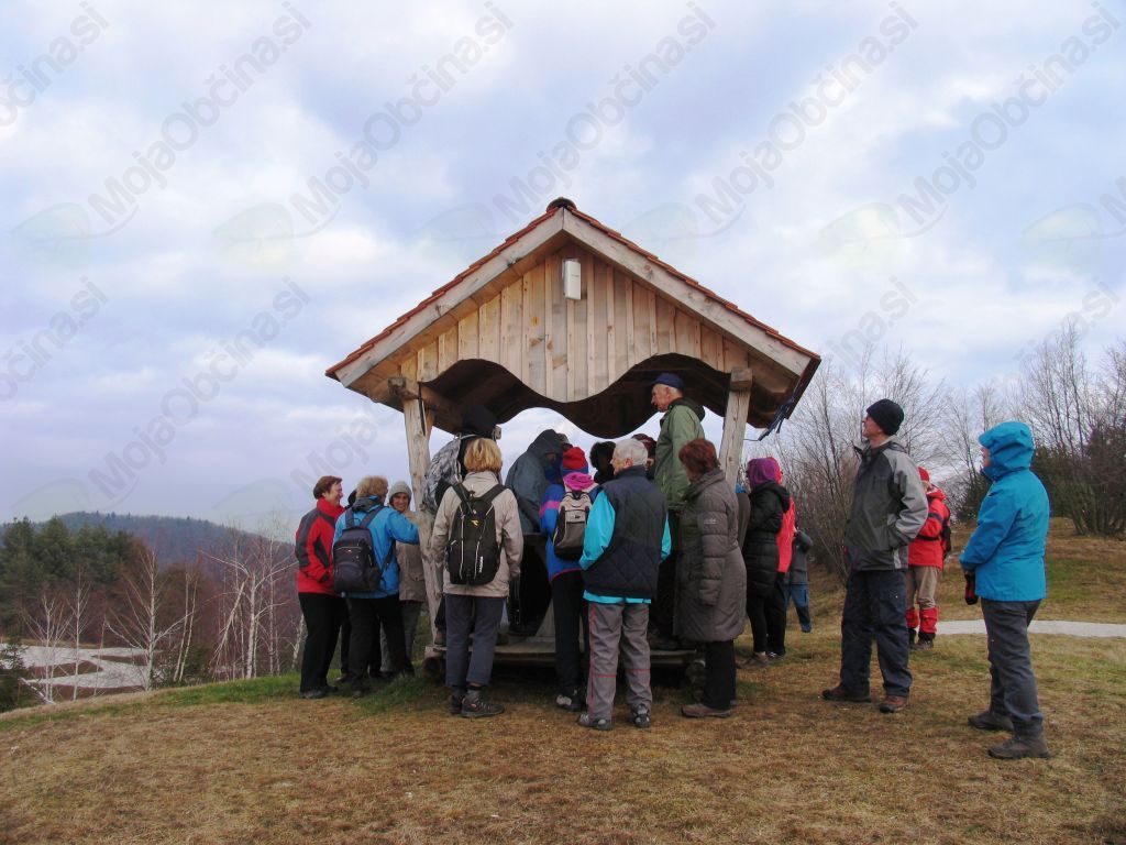 Po kosilu smo se odpravili na vzpetino nad vasjo. Tam stoji Partizanski dom s spomenikom padlim borcem. V bližini je tudi spomenik prvim ustanoviteljem manevrske strukture Narodne zaščite RS (7.9.1990). Nedaleč stran stoji cerkev sv. Lamberta (650 m), ki je postavljena na mestu nekdanjega gradu, v katerem je prebivala po moževi smrti »gospa s Pristave«, vojvodinja Virida iz Milana. Virida je bila soproga habsburškega vojvode Leopolda III. Na njeno prisotnost kaže tudi grb – železna plošča v betonu z grbom, v katerem je kača, ki požira otroka.