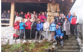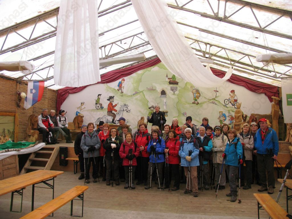 Pot smo nadaljevali proti vasi Dobrova pri Stični. Hodili smo po asfaltni poti skozi urejeno vas, potem pa po makadamski cesti in gozdni blatni poti proti Pristavi nad Stično. Pristava je lepo urejena turistična vasica, ki slovi po lepi izletniški in razgledni točki. V vasi smo se najprej napotili na kosilo na domačiji Okorn. Ob okusnem in dobrem kosilu smo nazdravili naši pohodnici Zalki, ki nas je počastila s pijačo za svoj visoki jubilej. Skupaj z njo smo tudi zapeli.