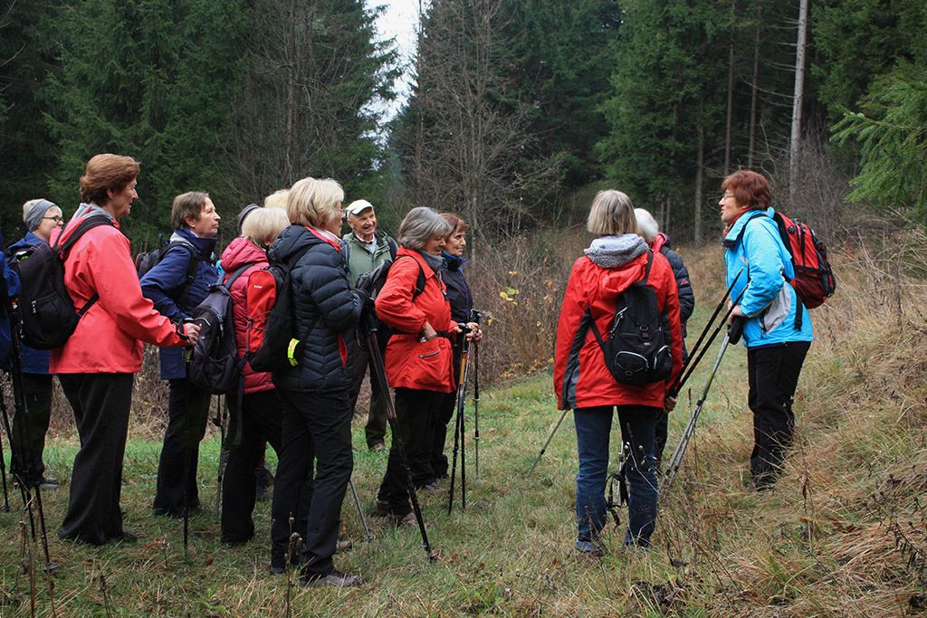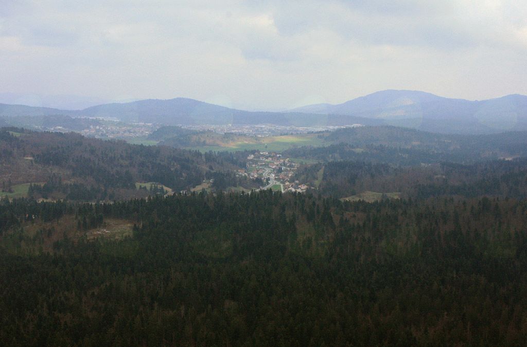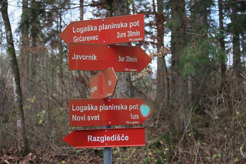 Po mehki gozdni poti smo se usmerili proti razgledniku pod Srnjakom, ki so ga uredili logaški planinci. Zelo hitro je postal dobro obiskana izletniška točka na Logaškem. Z razglednika smo imeli lep pogled na bližnje kraje in griče. Razgled na Ljubljansko kotlino nam je zastirala megla, na Julijske Alpe in druge višje vrhove pa nizka oblačnost. Sklenili smo, da razgledišče obiščemo še kdaj, v lepem vremenu.