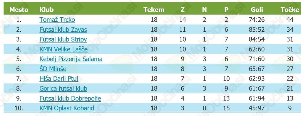 Tekmovanje v 2. Slovenski futsal ligi je končano. Člani Futsal kluba Zavas so sicer že tri kroge pred koncem zasedli drugo mesto, ki vodi v kvalifikacije za tekmovanje na najvišjem nivoju.