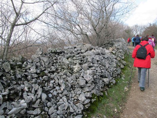 Videli smo tudi več pastirskih hišk, zgrajenih iz kamenja. Te hiške so služile pastirjem, da so se lahko umaknili pred dežjem ali hudo vročino. Opazili smo že nekaj spomladanskih cvetic, kot so nunke in dvolistne morske čebulice. Mogočni bori pa kraljujejo nad kraško pokrajino, so uporni in pokončni, spremljajo mimoidočega pohodnika, mu nudijo senco, kadar pripeka vroče sonce in z oddajanjem smole ter eteričnih olj izboljšujejo počutje.