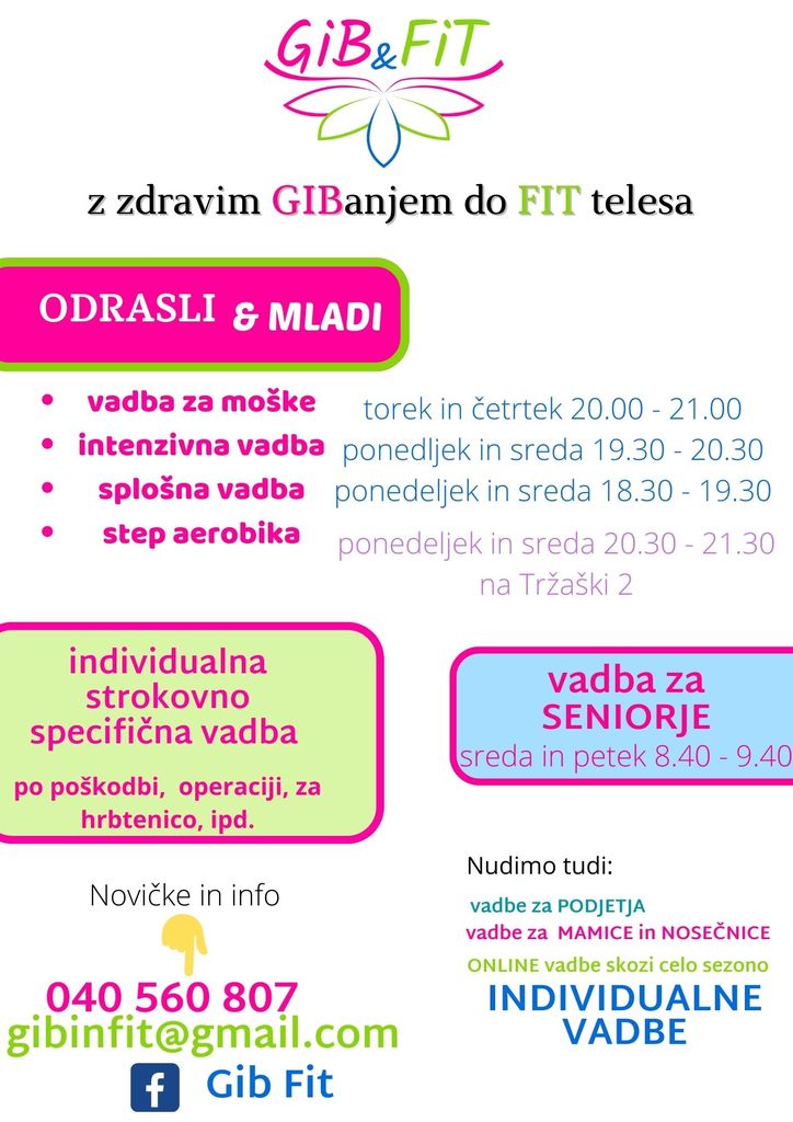 za več informacij pa smo vam na voljo na gibinfit@gmail.com ali preko telefona 040 560 807